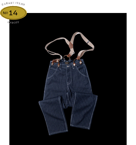 サスペンダー付きストライプワークパンツ