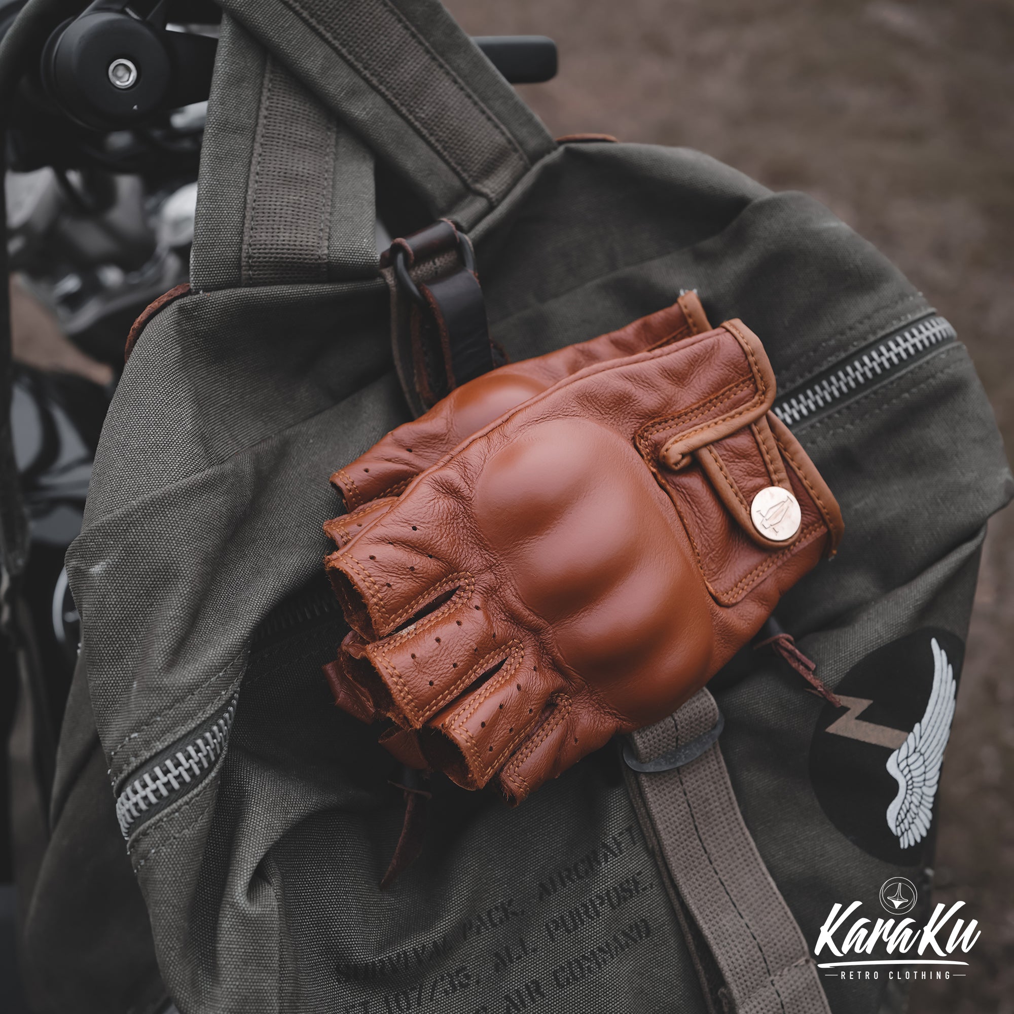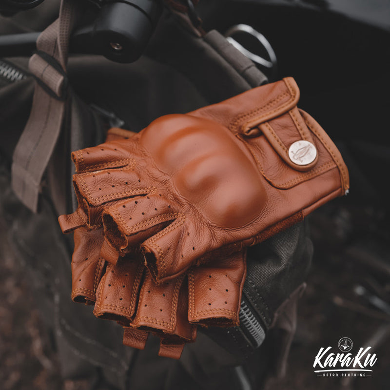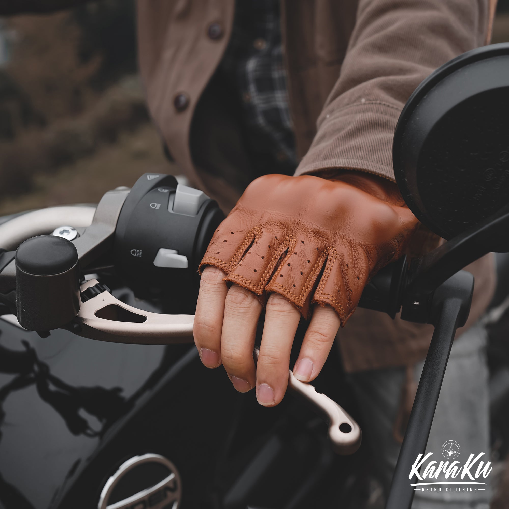 Genuine Leather Protective Half Finger Motorcycle Gloves