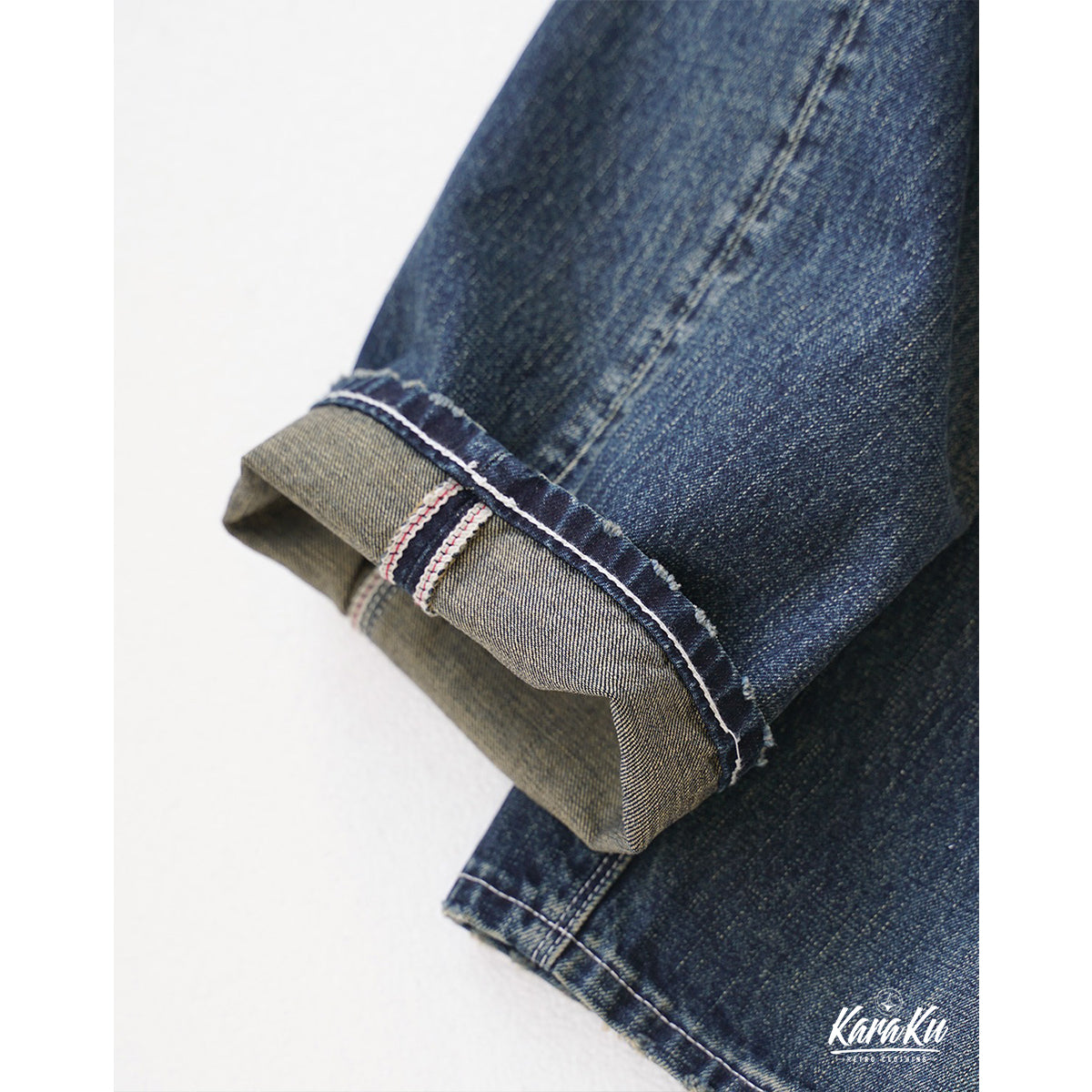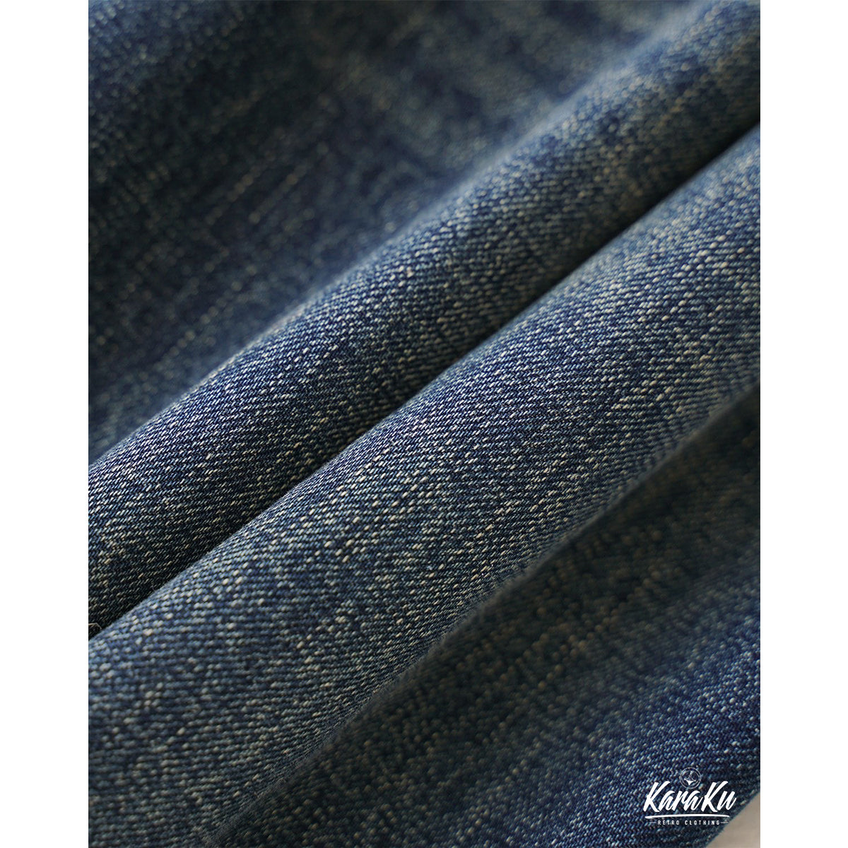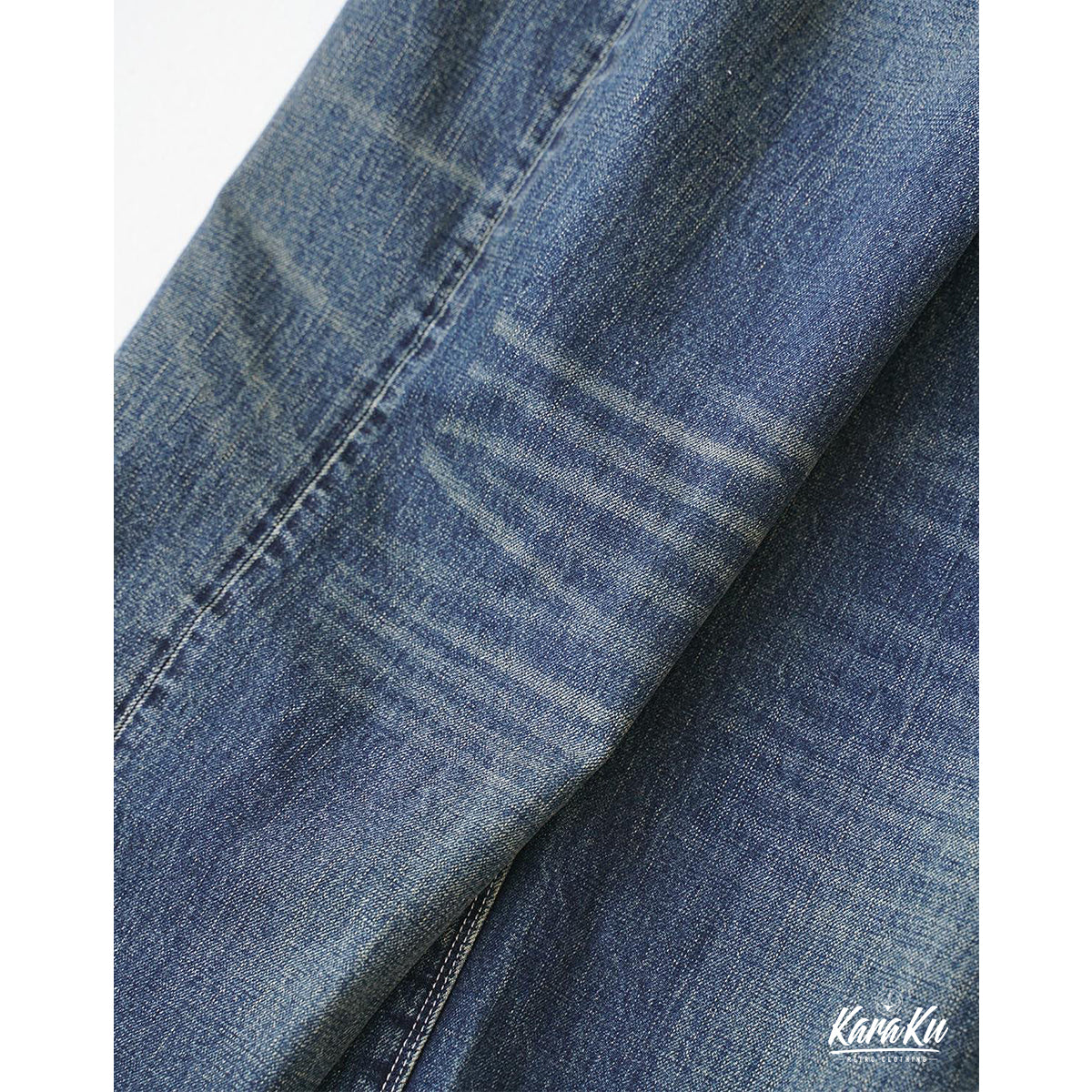 昔ながらの丈夫でしっかりとしたコットン100%のデニム生地を使用しています。ハリ感を残しつつも、穿き込む程に体に馴染んでいくのが魅力です。オールシーズン楽しめるデニムです。