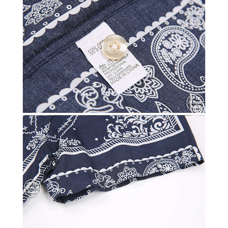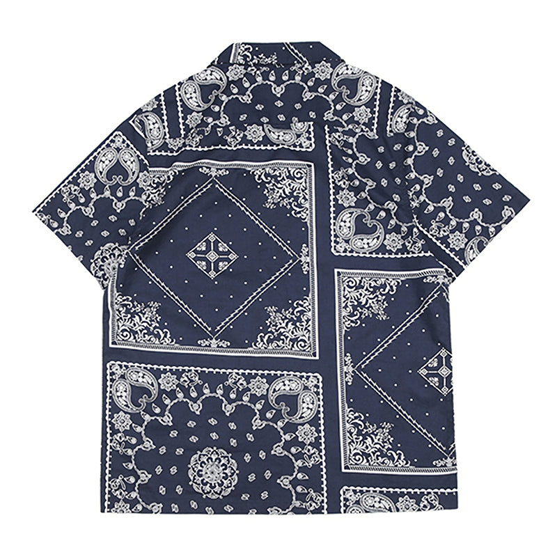 (Paisley Bandana Pattern) Open Collar Aloha Shirt