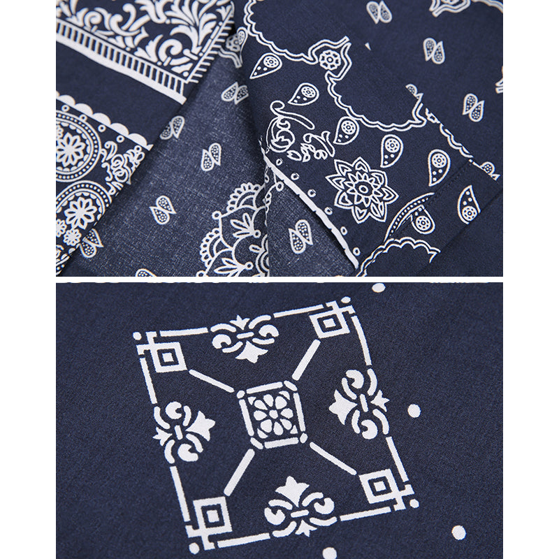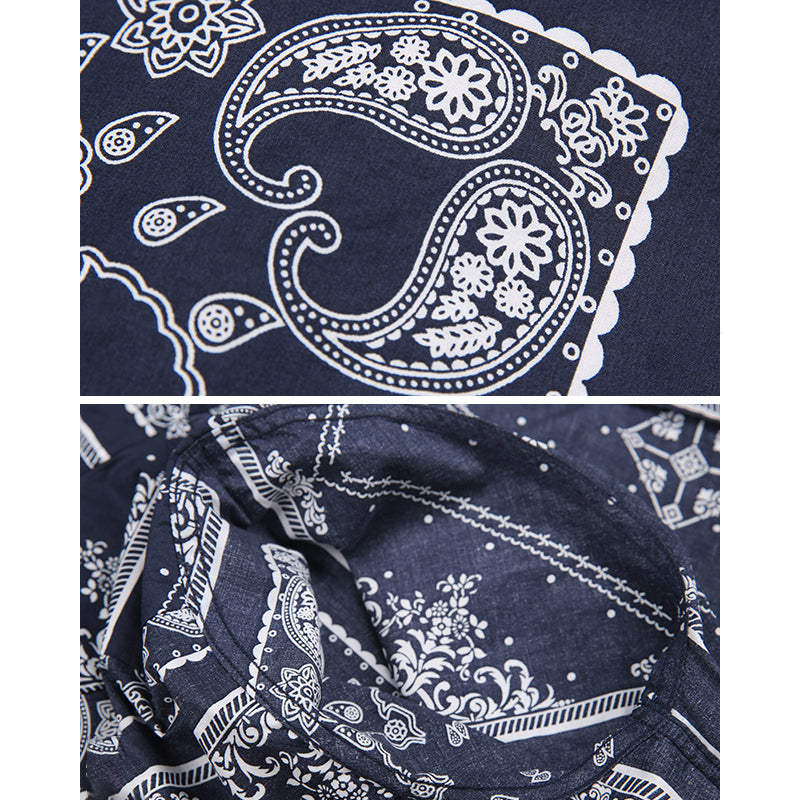 The all-over paisley bandana pattern, which will be the main part of the coordination, has an outstanding impact, and the deep indigo is combined to create a mature and relaxed finish.