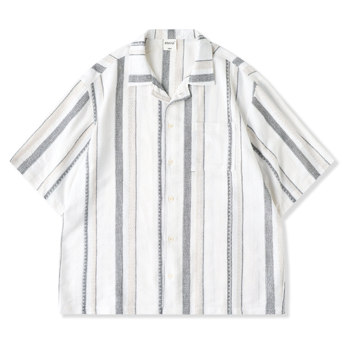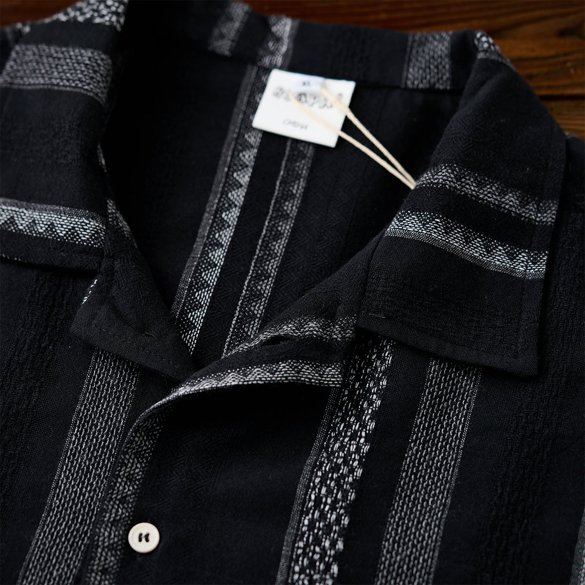 【予約】紅白ヒモ付き 「Karaku」刺繡ロゴ 先染めストライプ長袖シャツ