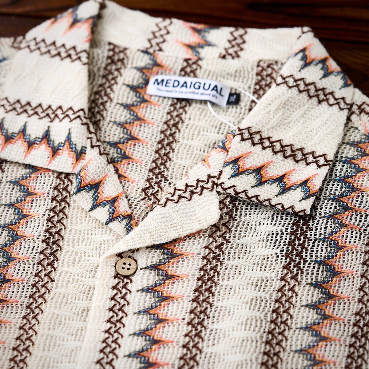 【予約】「STAY TRUE」刺繍ワッペン ジグザグジャガードニットスウェット