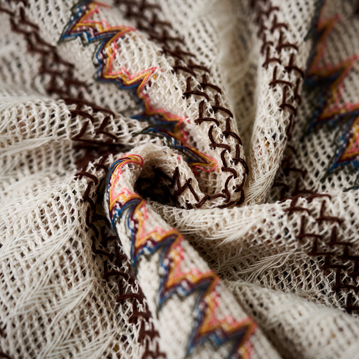 二色展開 ヘビーウェイト透かし彫り編みクルーネックニットセーター