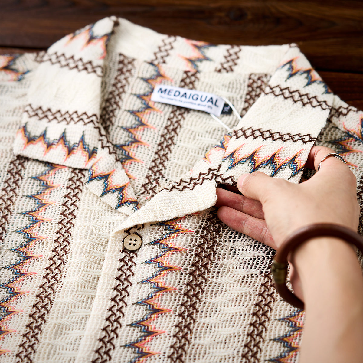 ウール100% フェアアイル柄ジャガード織りニットカーディガン