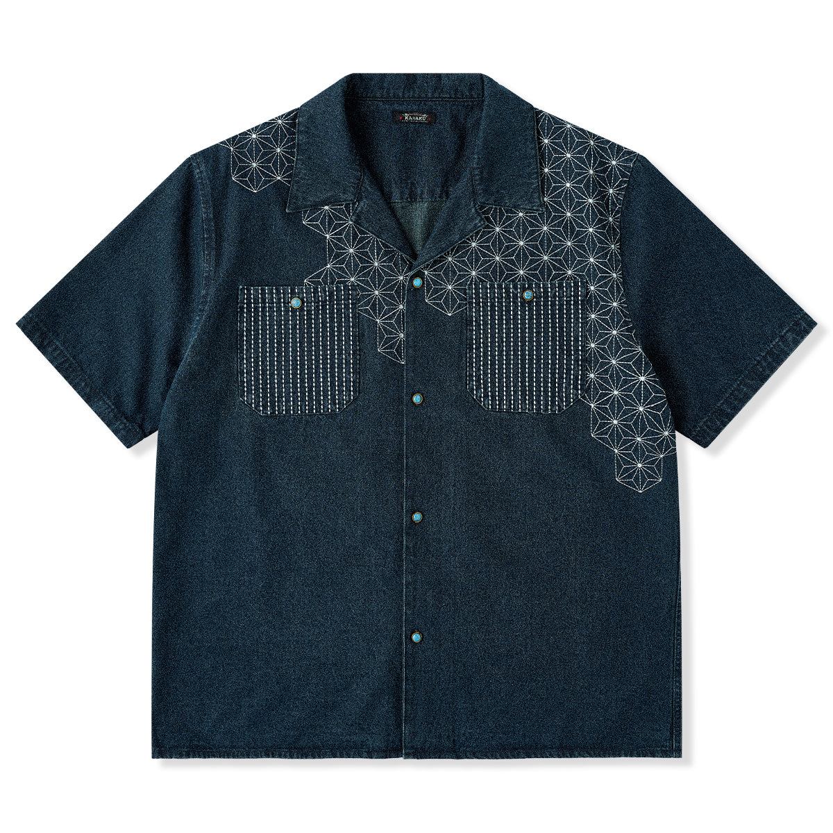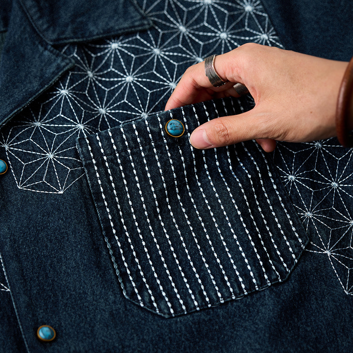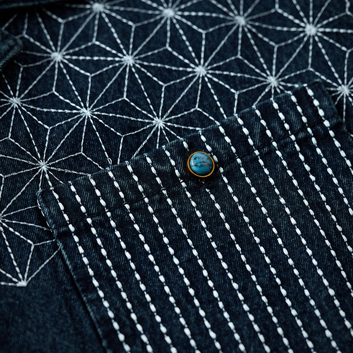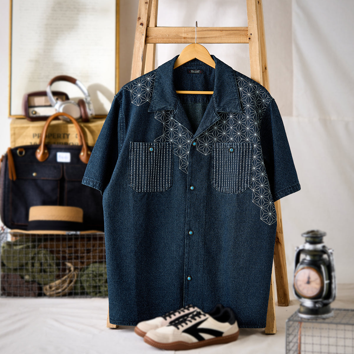 【予約】襟コーデュロイ 裏エスニック柄プリントデニムワークシャツ