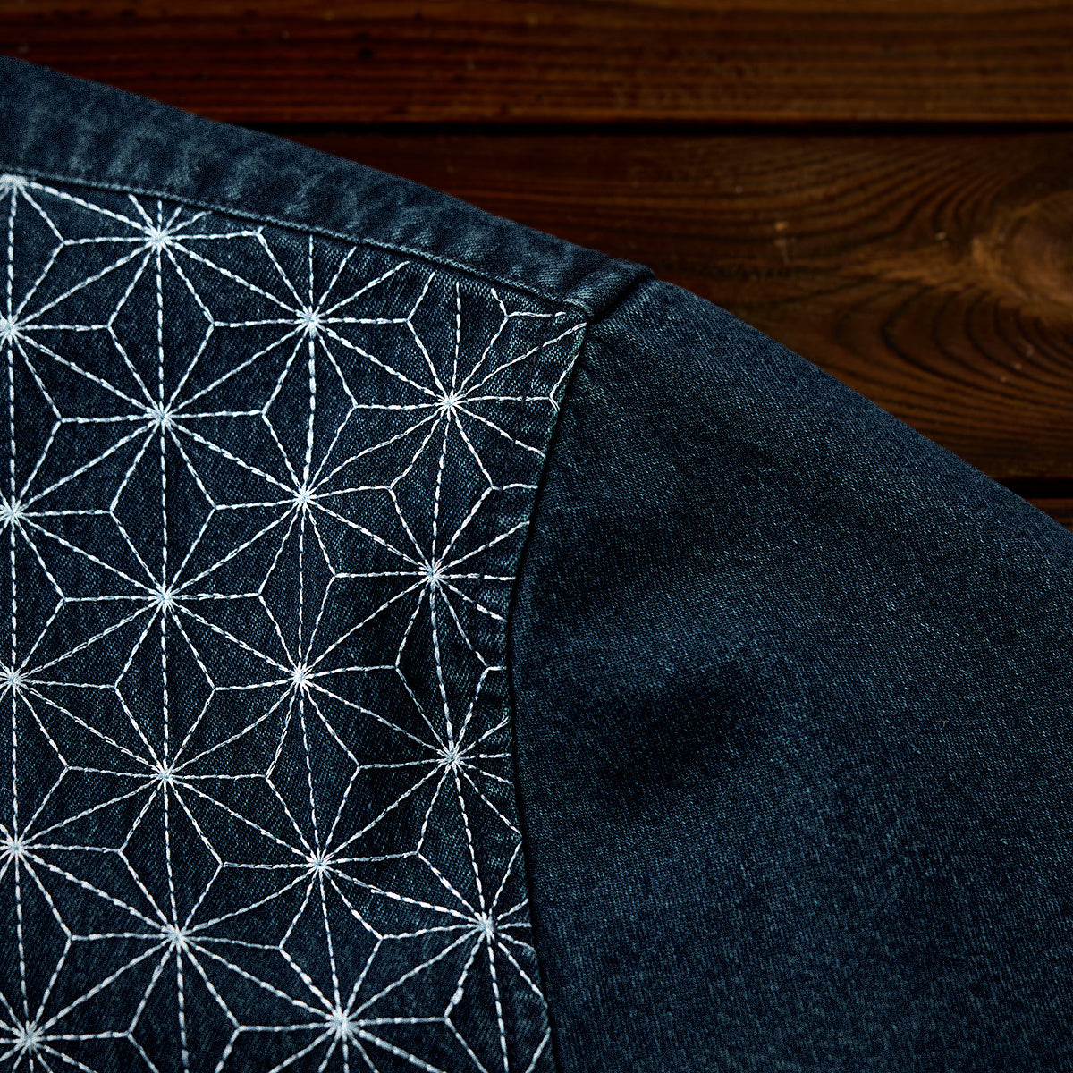【予約】「STAY TRUE」刺繍ワッペン デニム襟切替マルチストライプジャケット