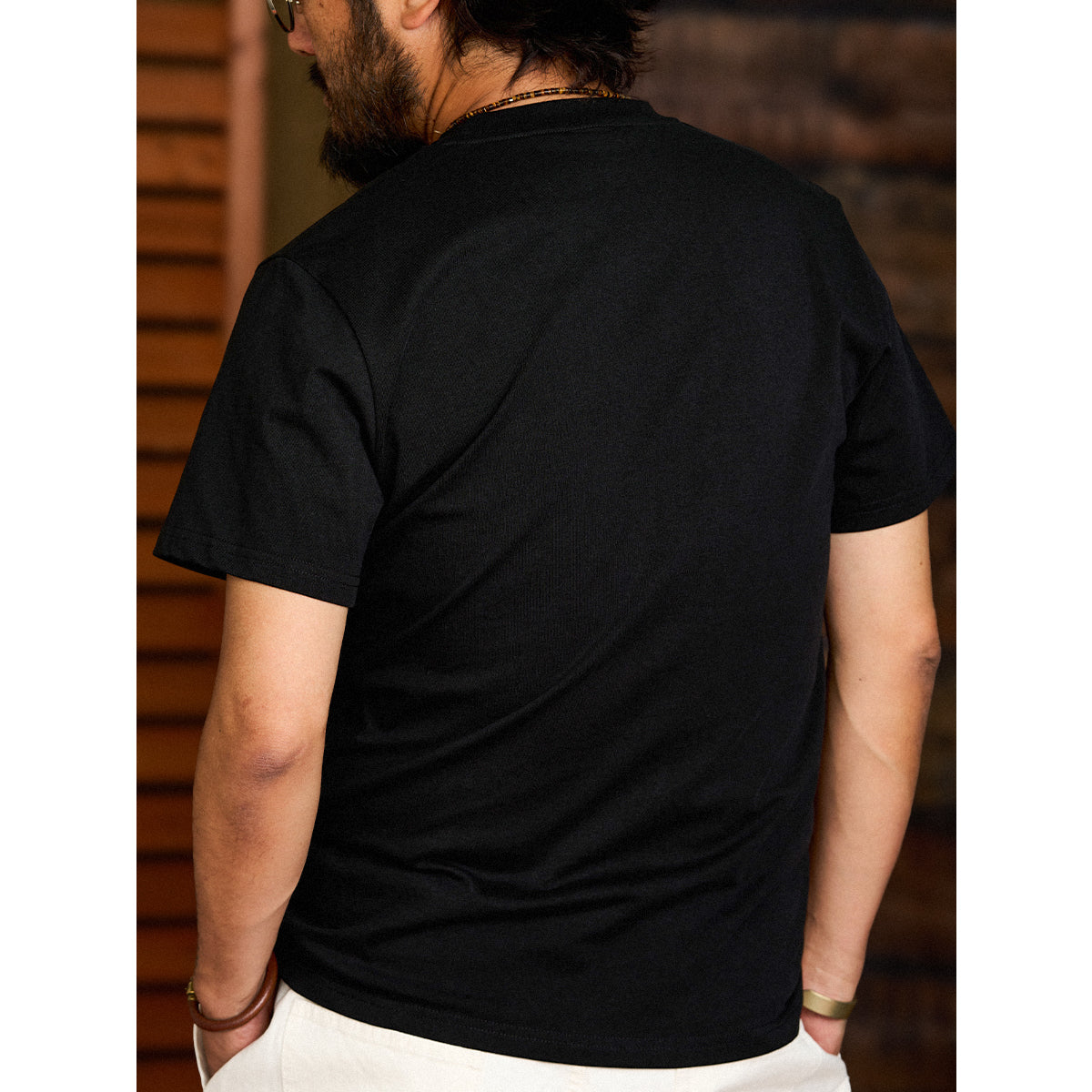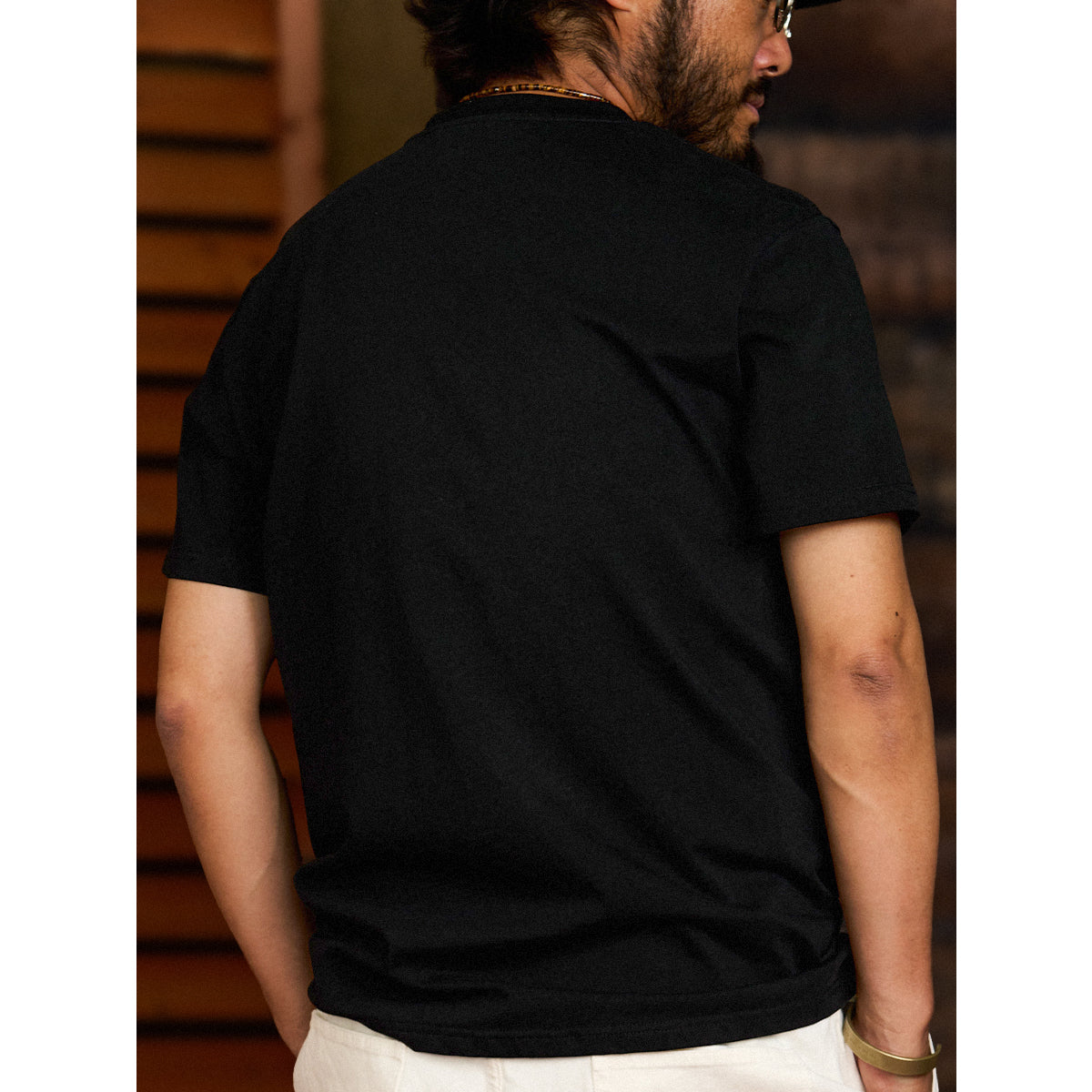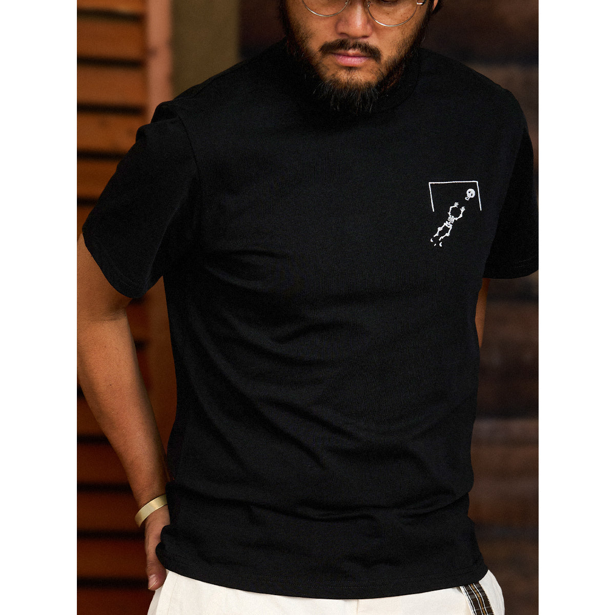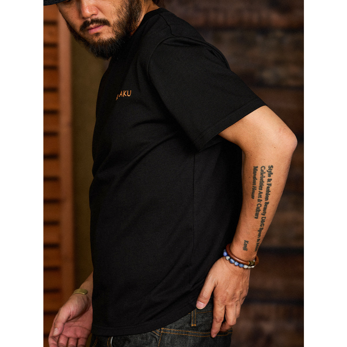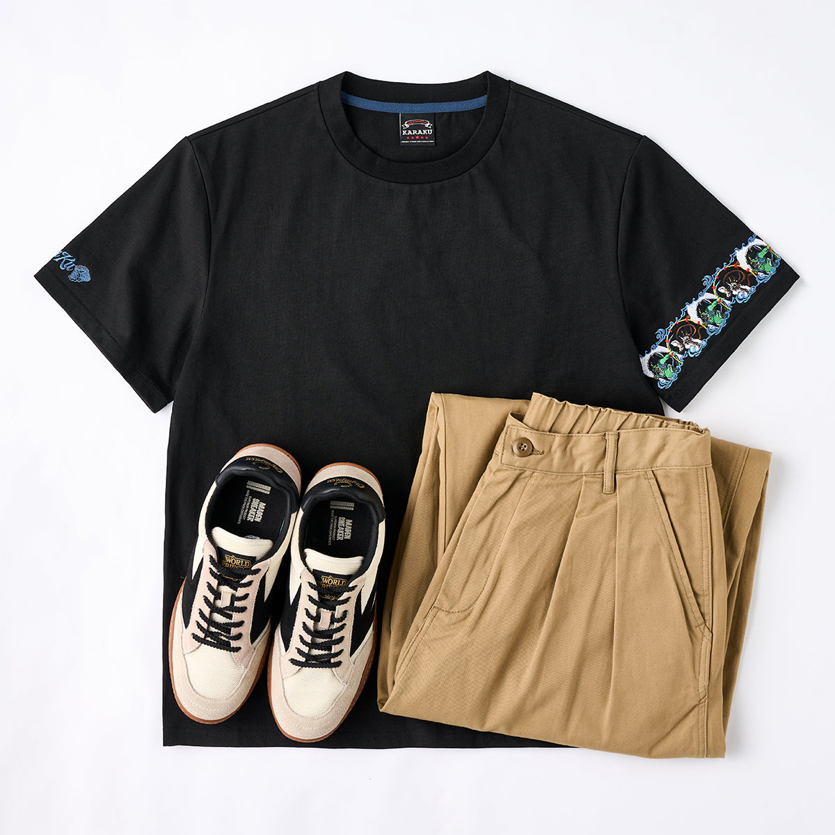 karaku plusのメンズTシャツは、藍染めや刺繍など伝統技術を活かしたサステナブルな一枚。