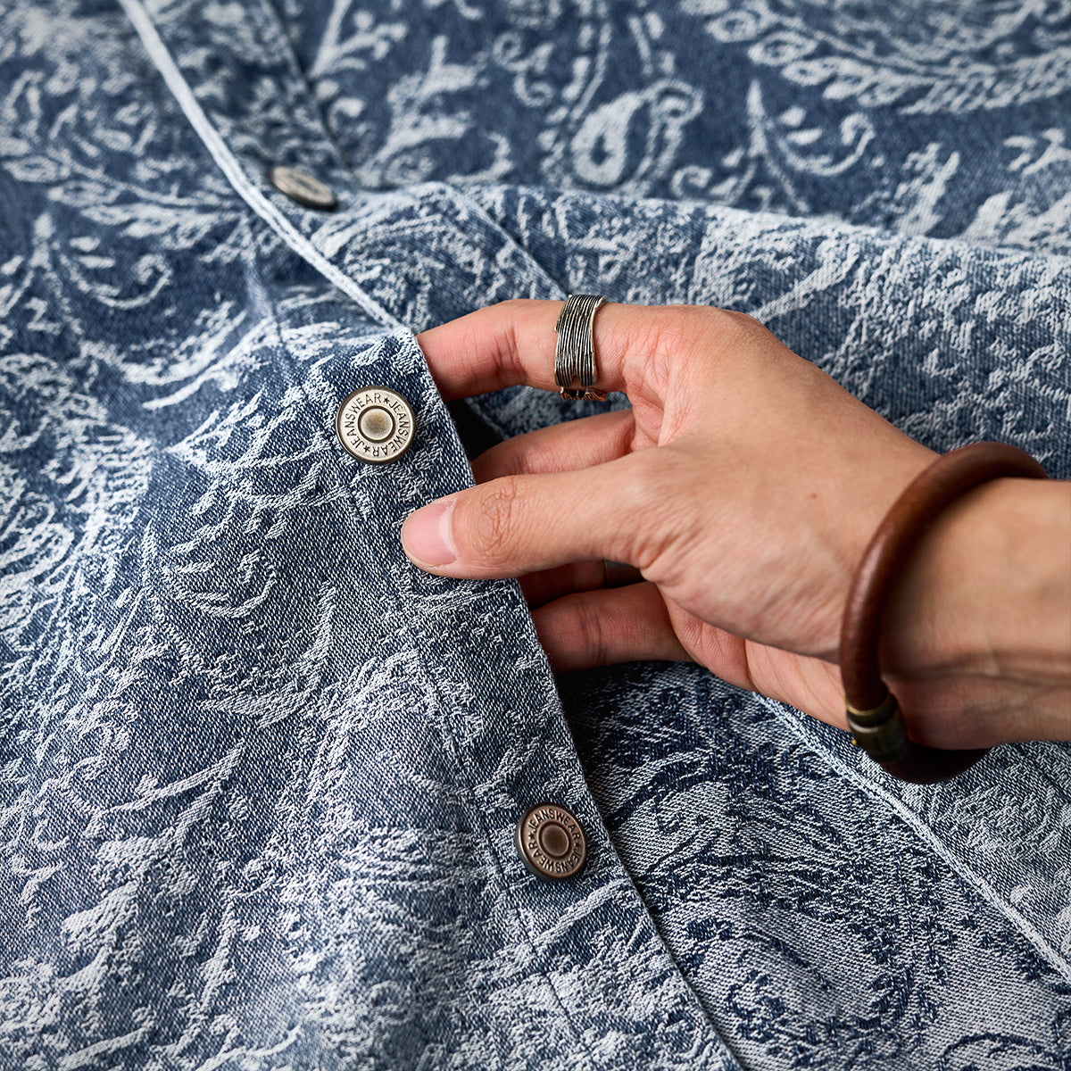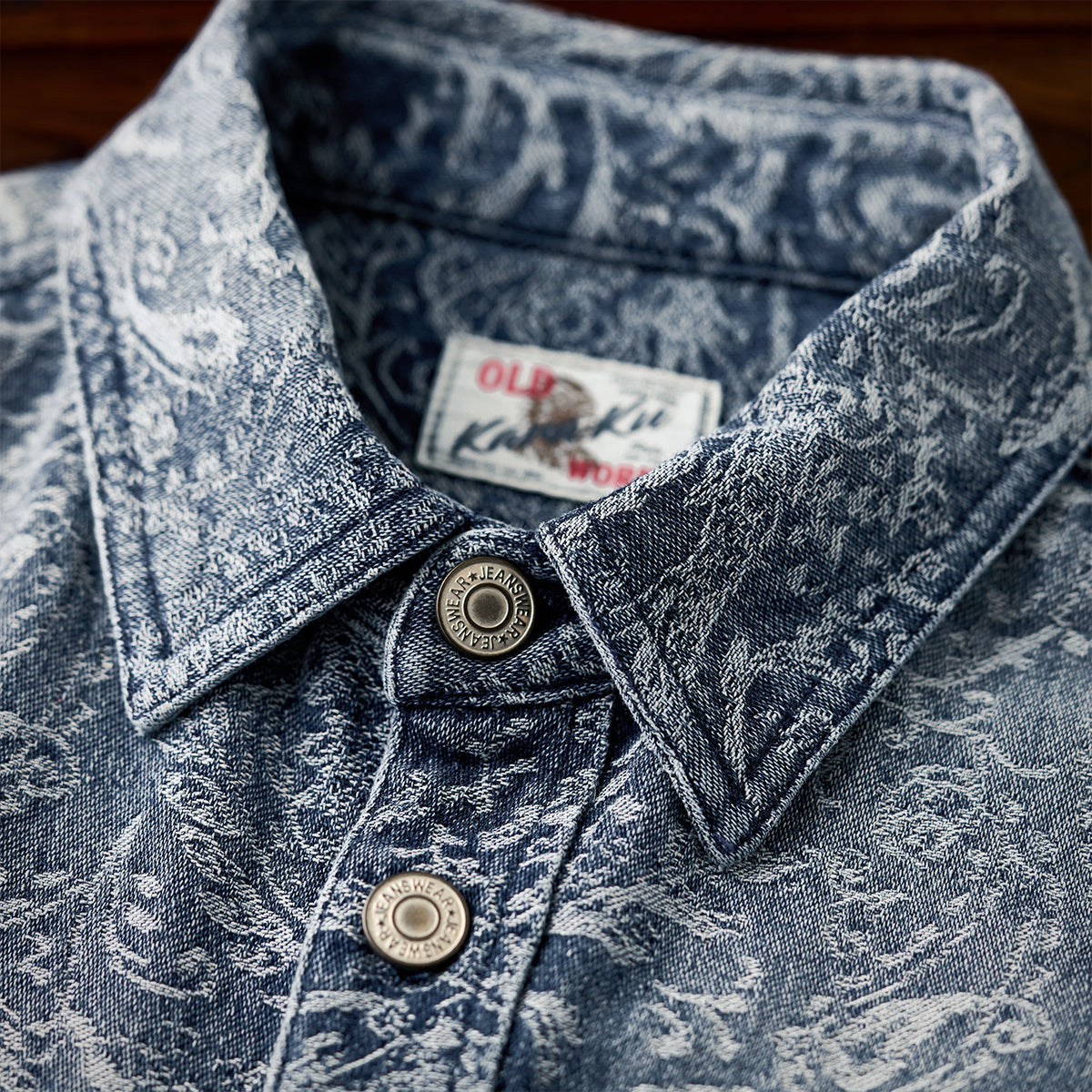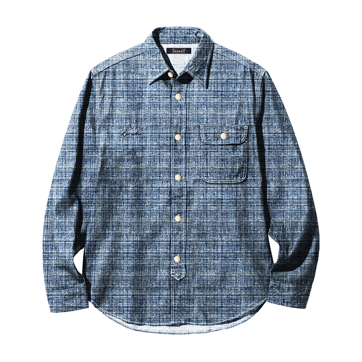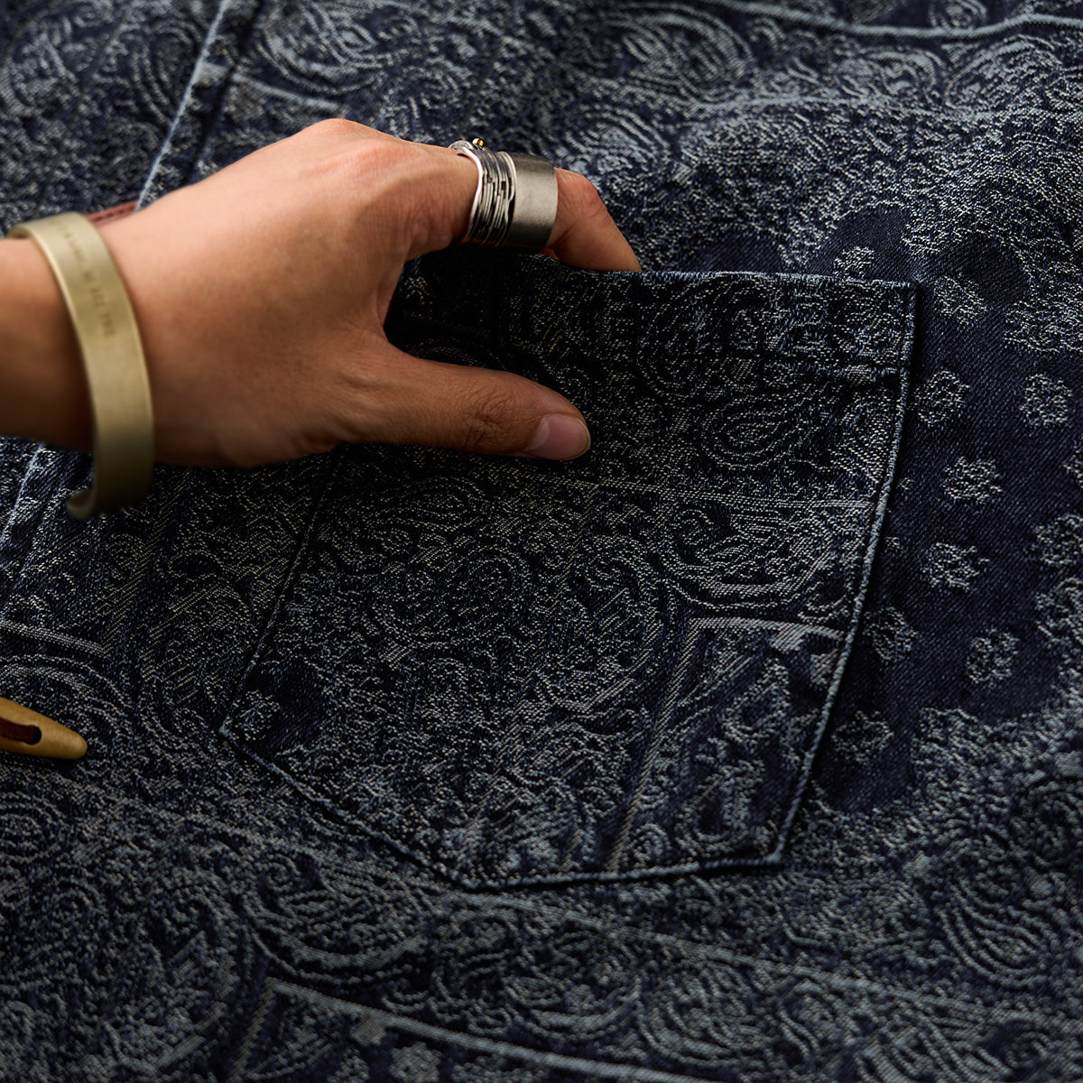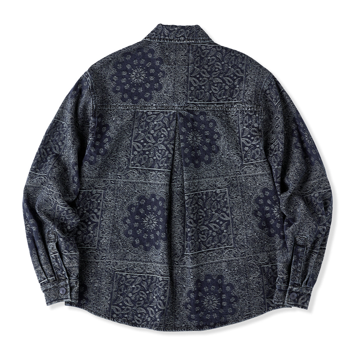 【予約】襟コーデュロイ 裏エスニック柄プリントデニムワークシャツ