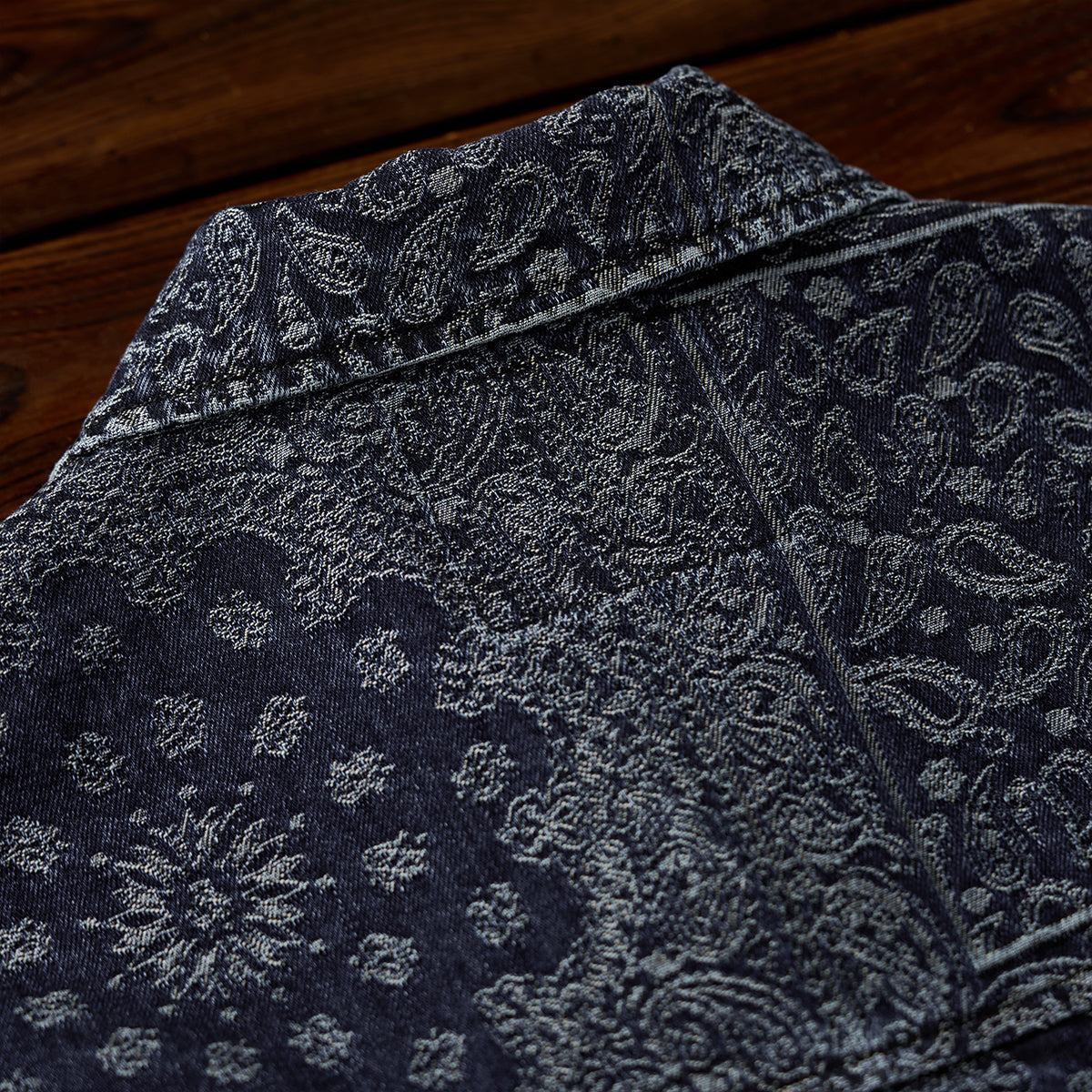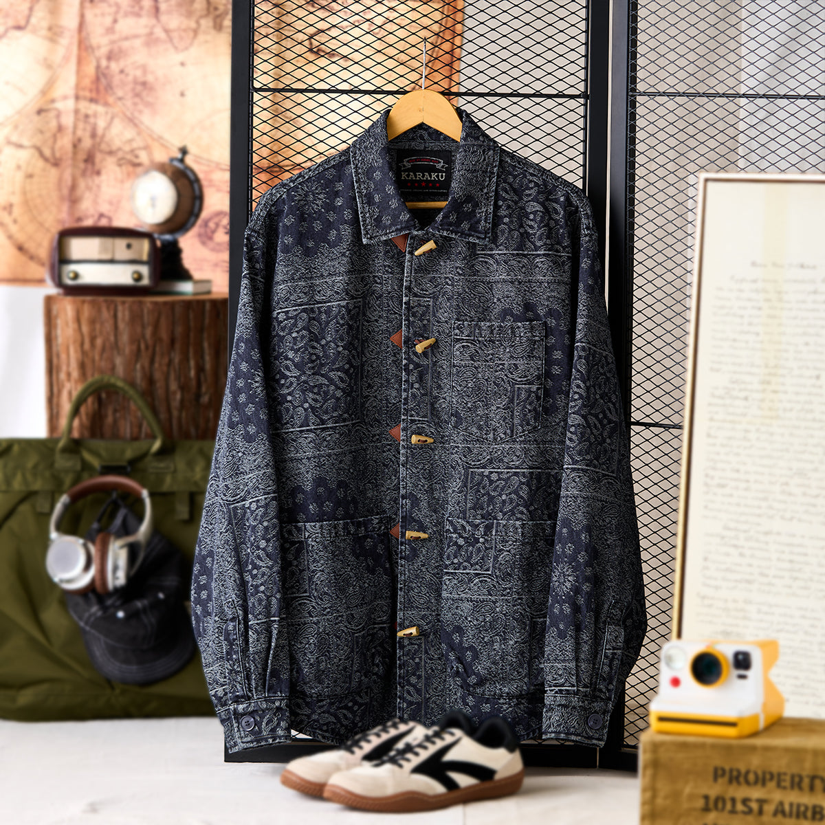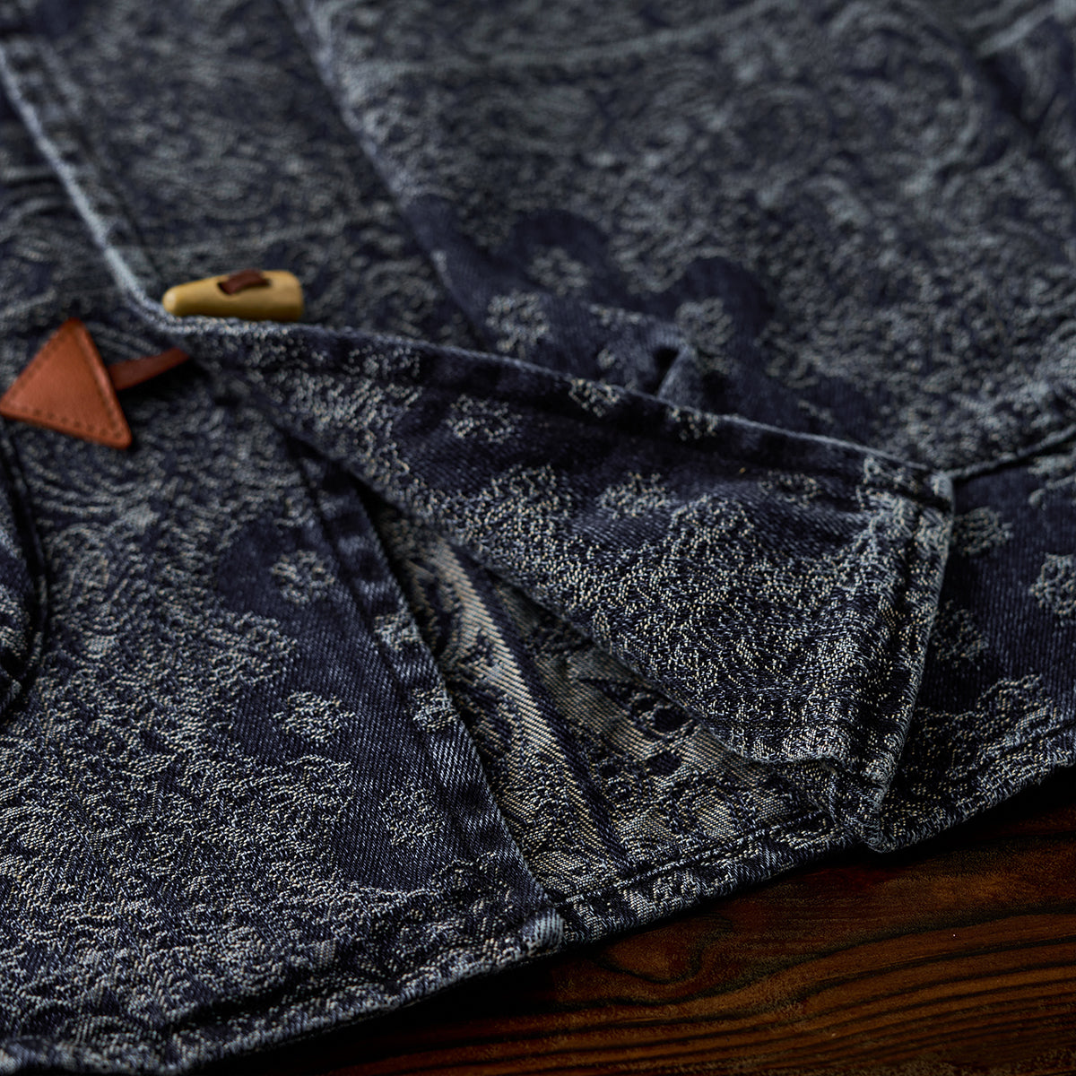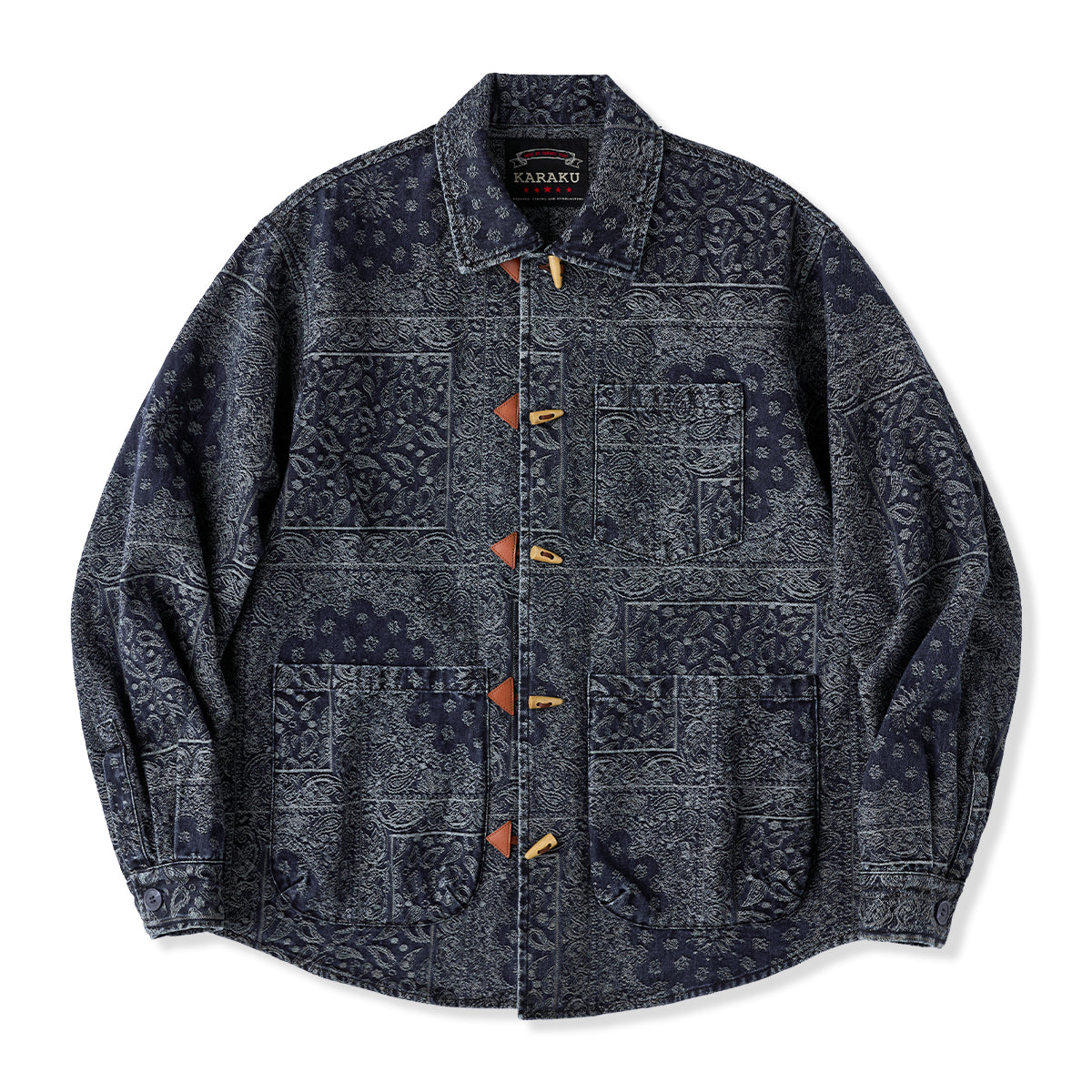 【予約】襟コーデュロイ 裏エスニック柄プリントデニムワークシャツ