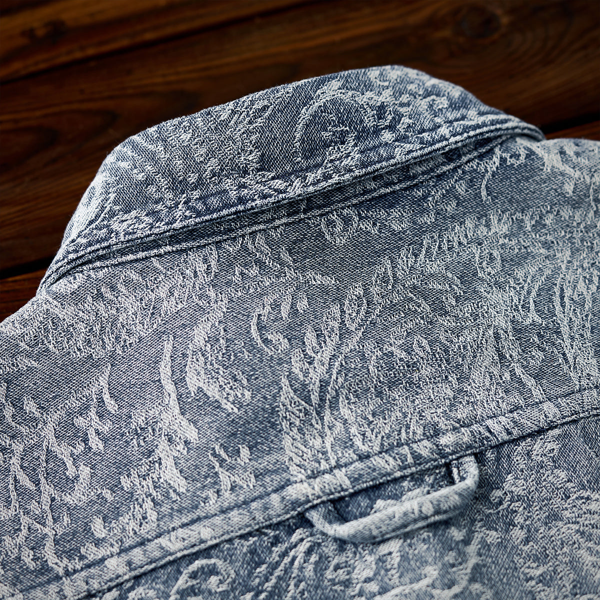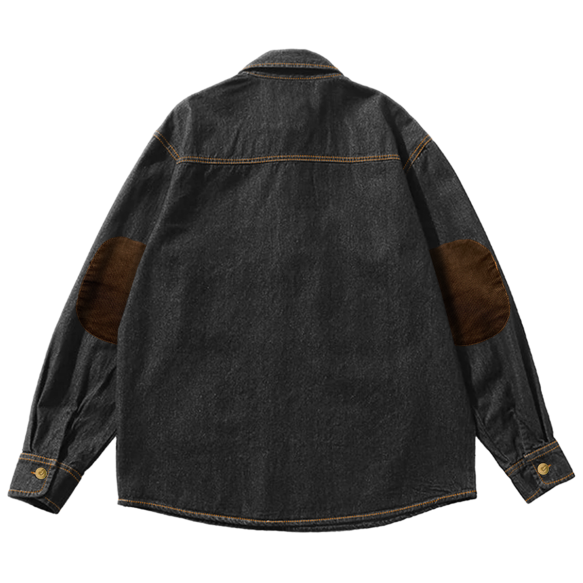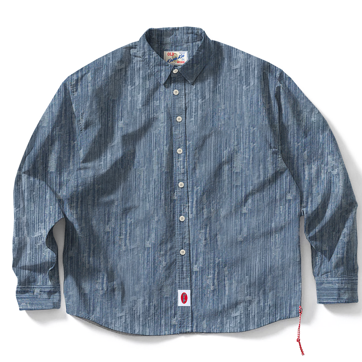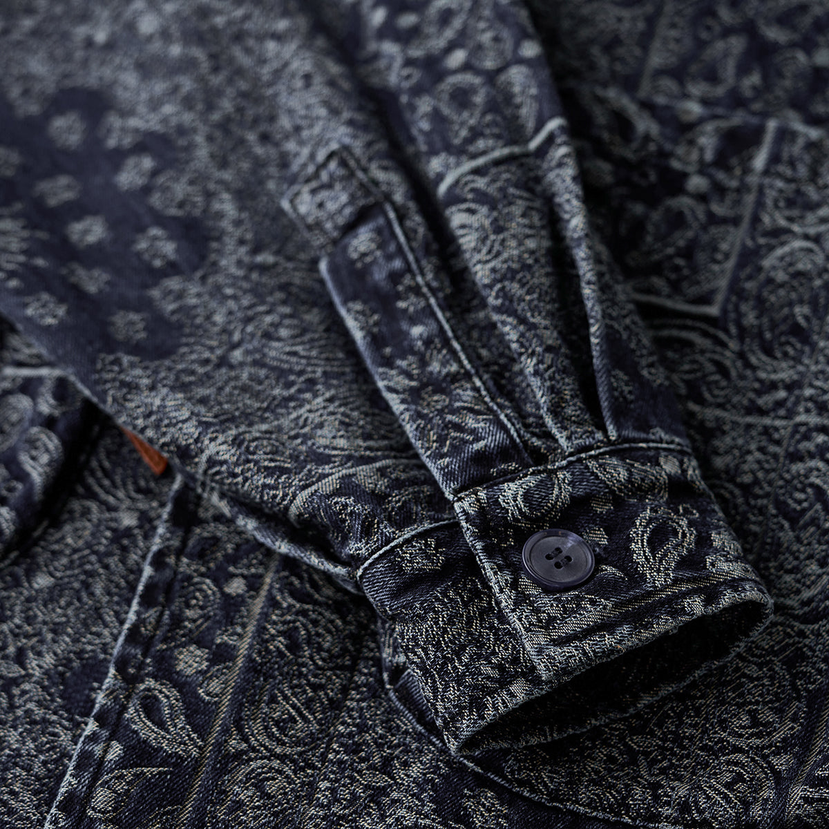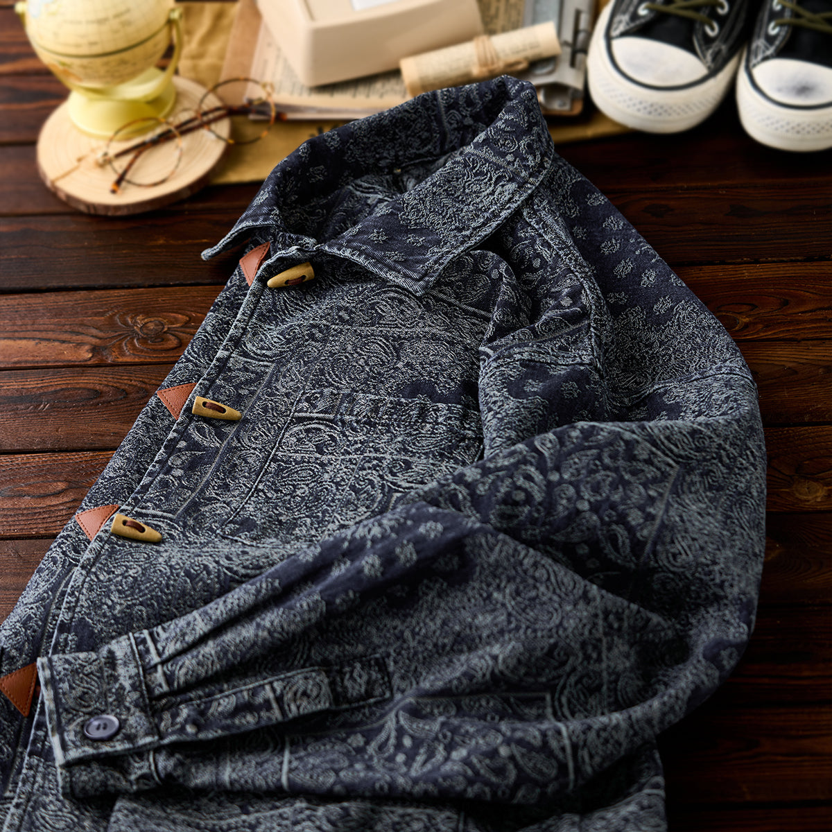 【予約】襟コーデュロイ 裏エスニック柄プリントデニムワークシャツ