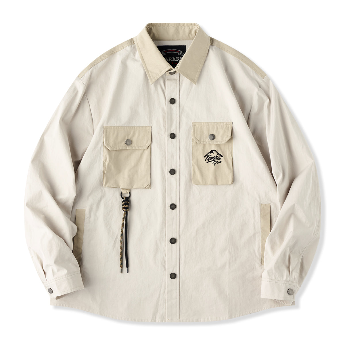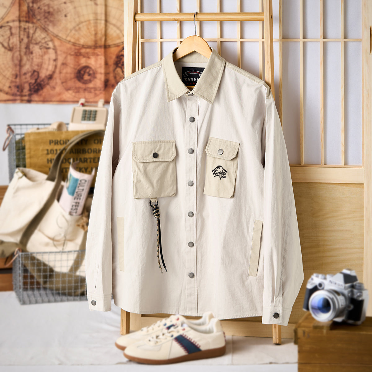 多色展開 ワークポケット付き細畝コーデュロイ長袖シャツ