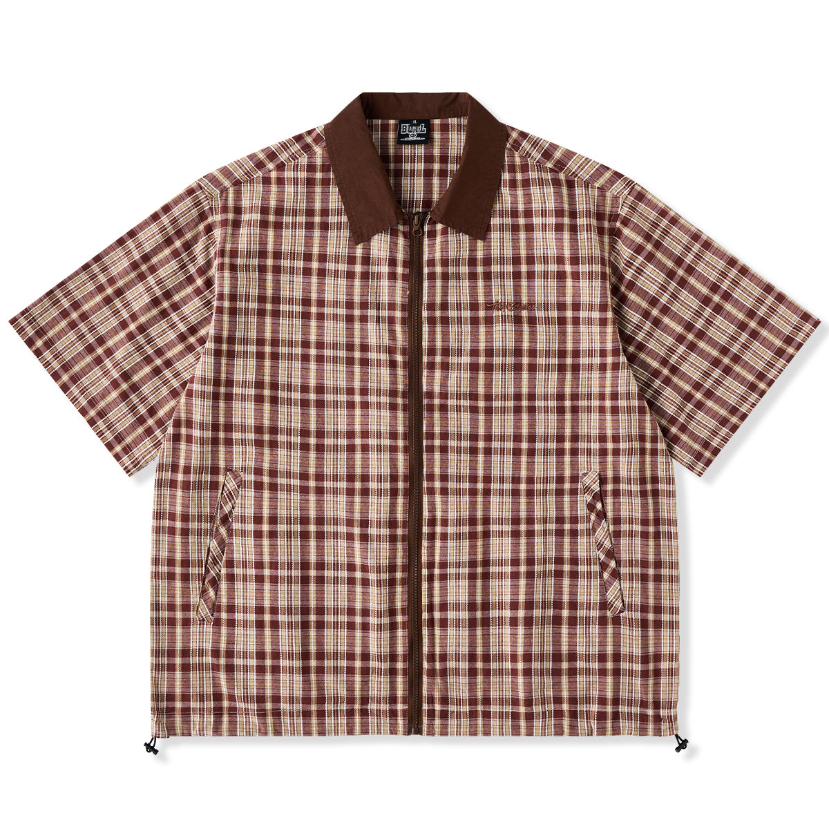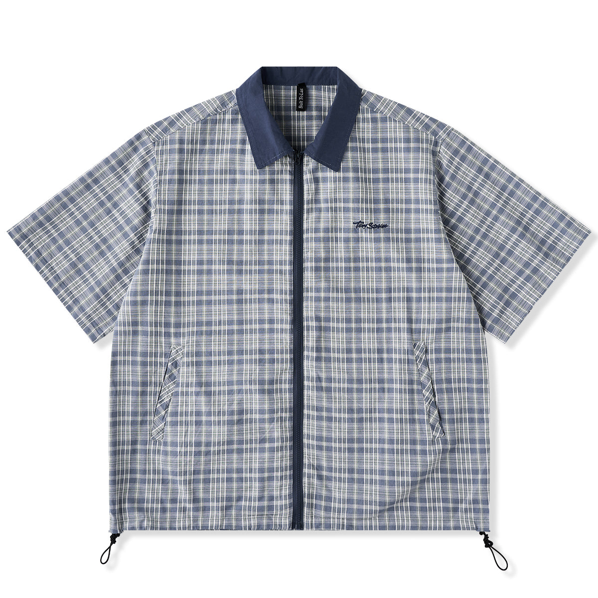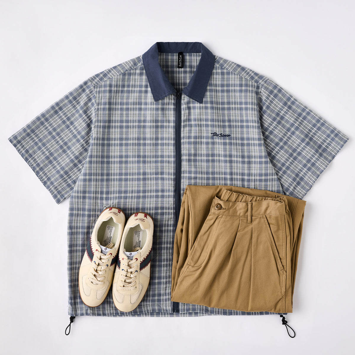 【予約】フェイクレイヤード仕様 ストライプシャツ&ハーフジッププルオーバースウェット