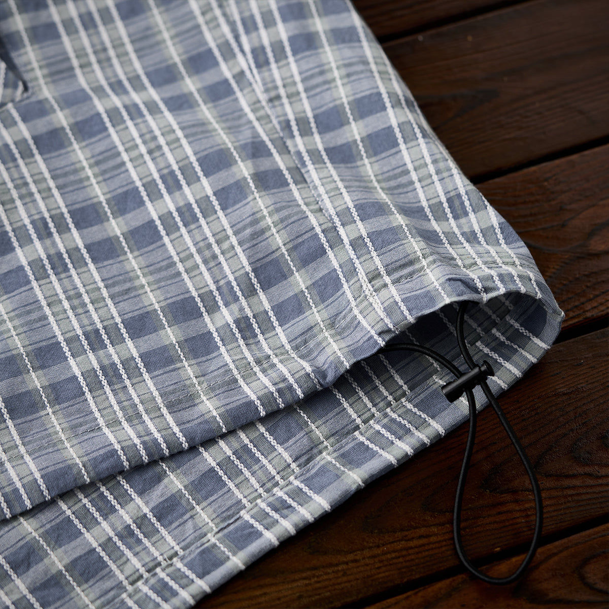 レザー襟切替 チンストラップ付きチェック柄裏キルト中綿ジャケット