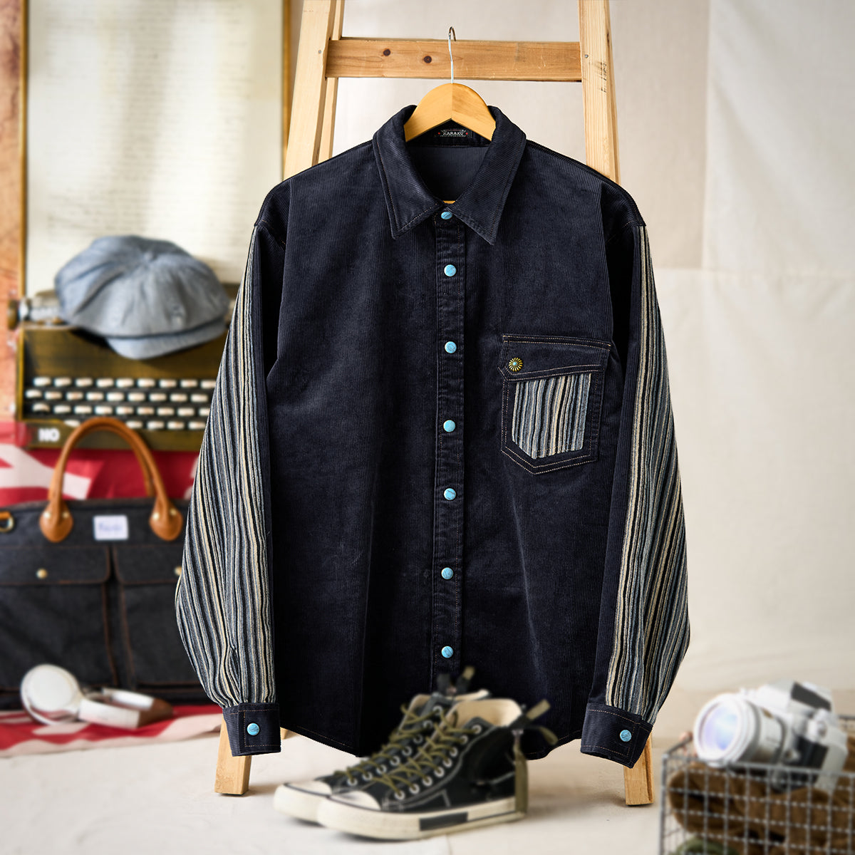 6色展開 ワンポケット付きコーデュロイ長袖シャツ