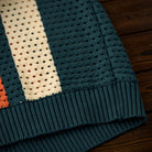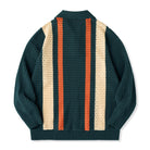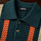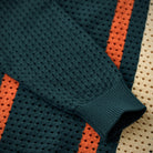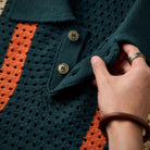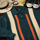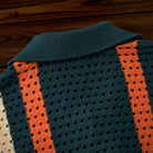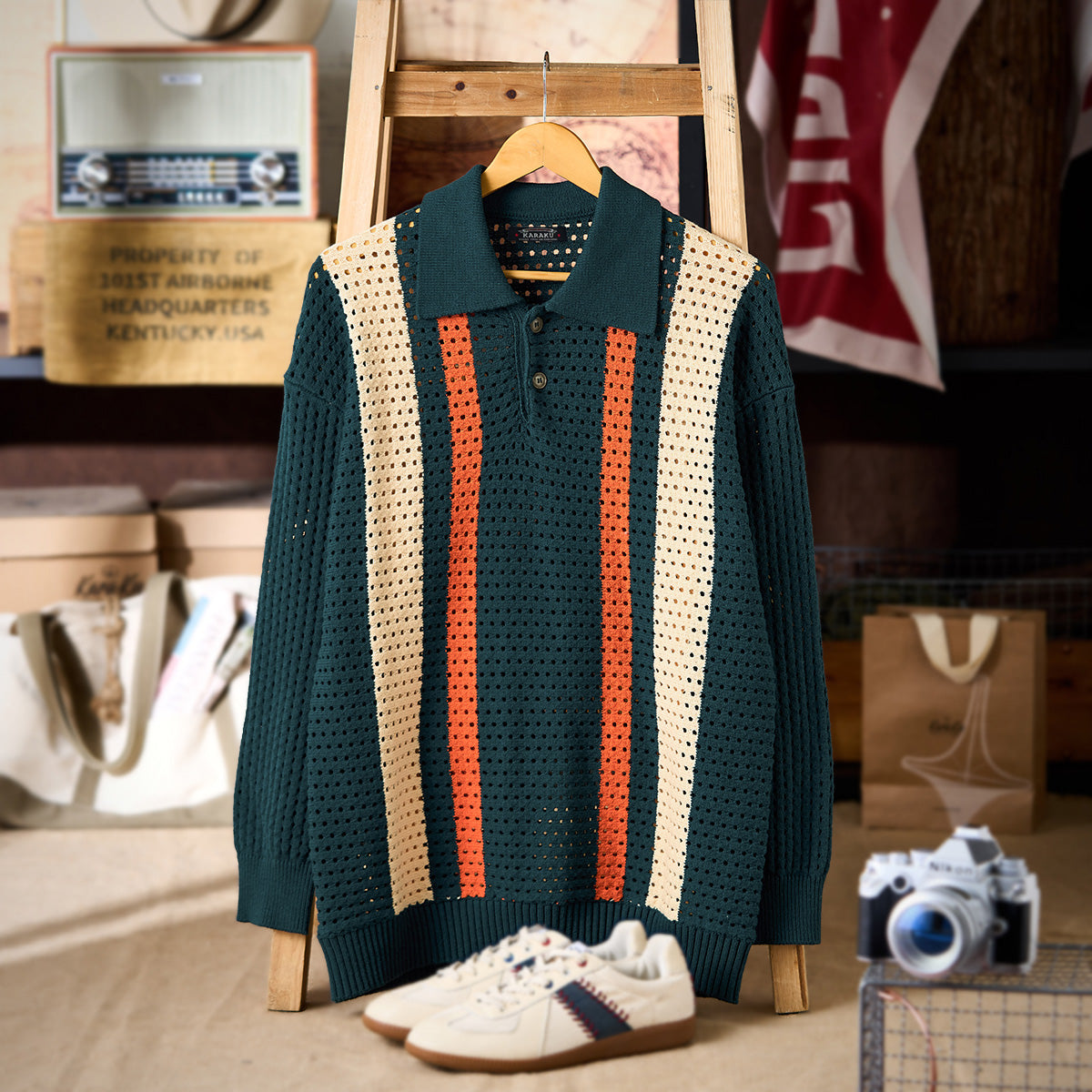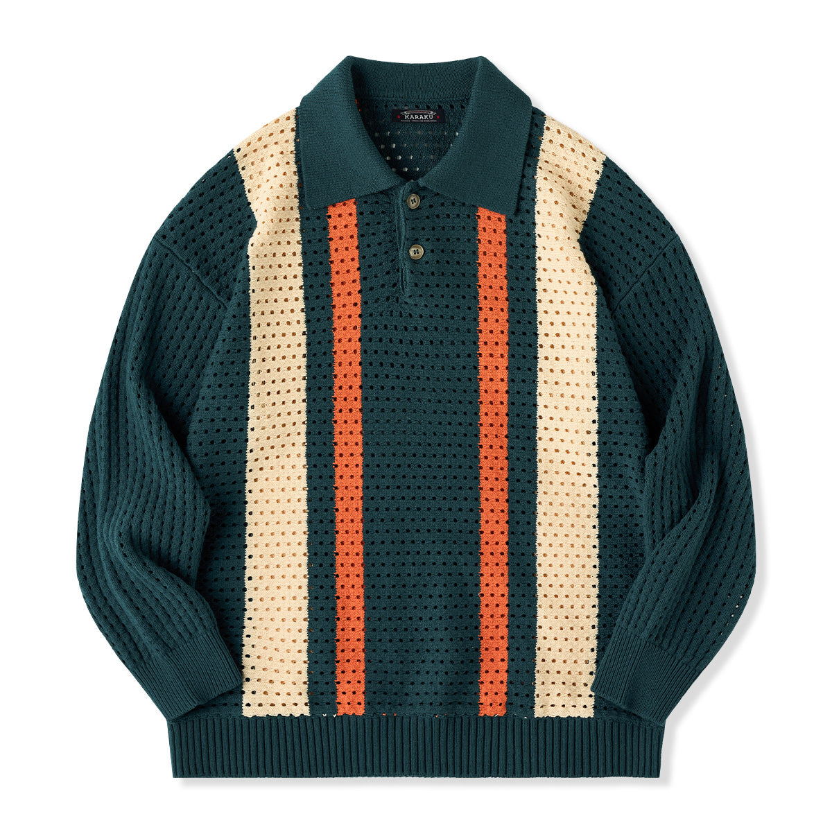 【予約】配色ストライプ ポロカラー透かし彫りレースニットセーター