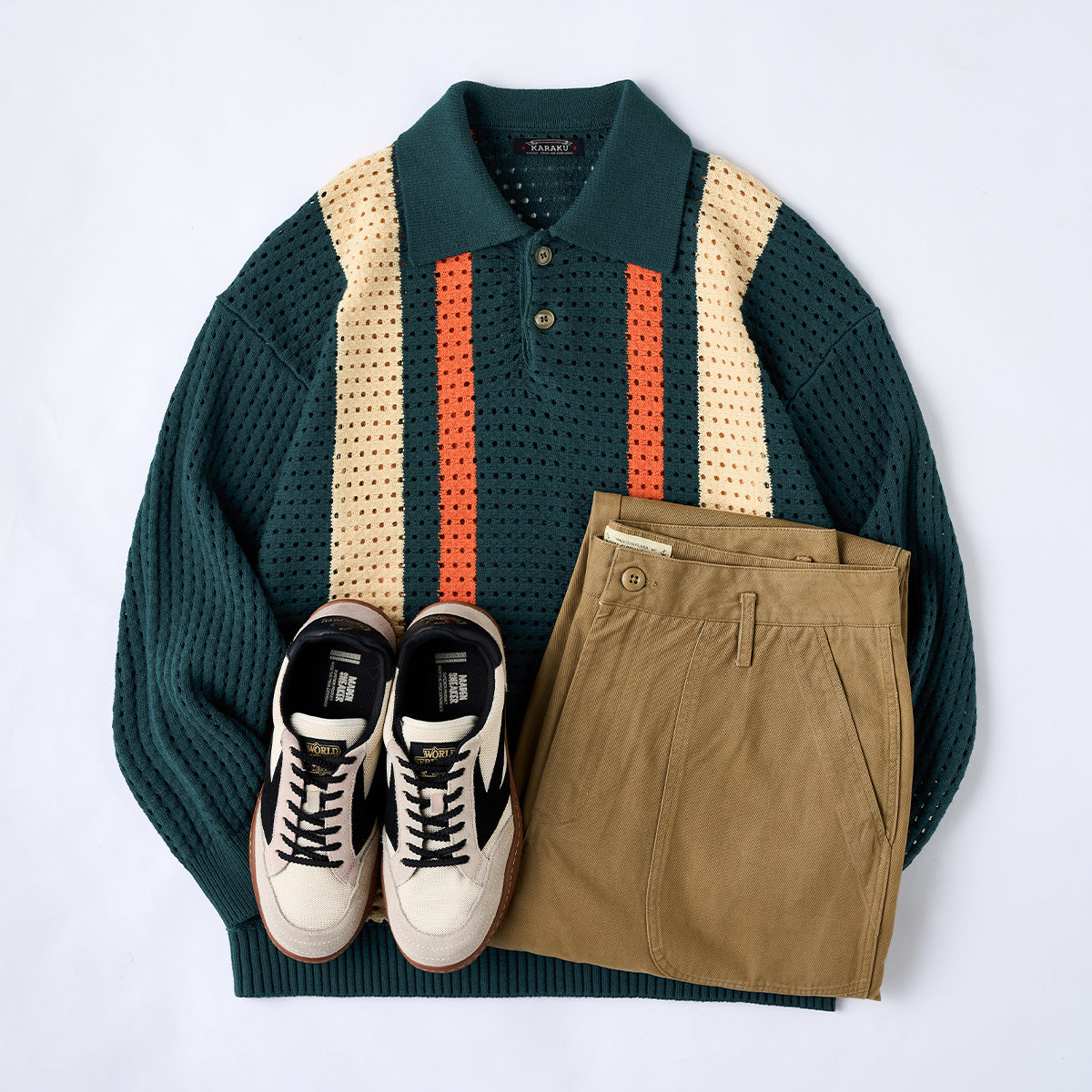 デニムやチノパンと合わせることで、リラックスしたカジュアルスタイルが完成します。