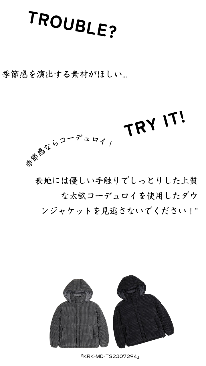 季節感ならコーデュロイ!表地には優しい手触りでしっとりした上質な太畝コーデュロイを使用したダウンジャケットを見逃さないでください!
