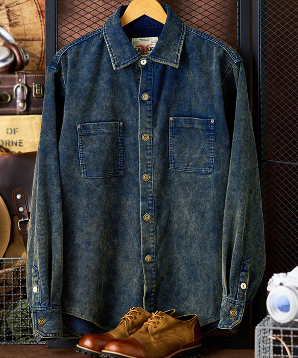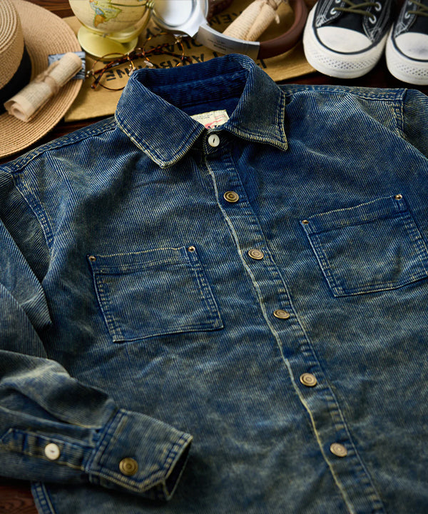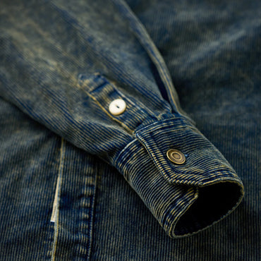 クラシックなダブルポケットワークシャツのシルエットに、11ウェールのコーデュロイデニム生地を使用。ヴィンテージ感あふれるウォッシュ加工を施し、味わい深い風合いに仕上げました。