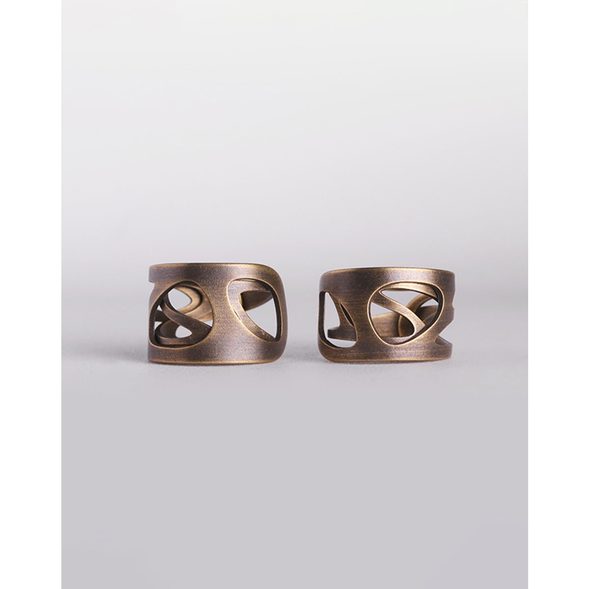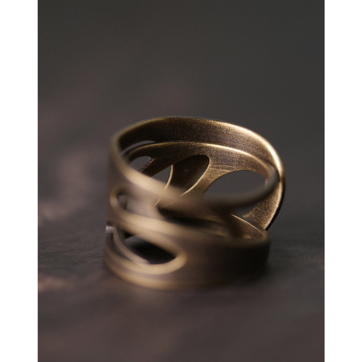 ヘアライン加工 アンティーク透かし彫り真鍮リング