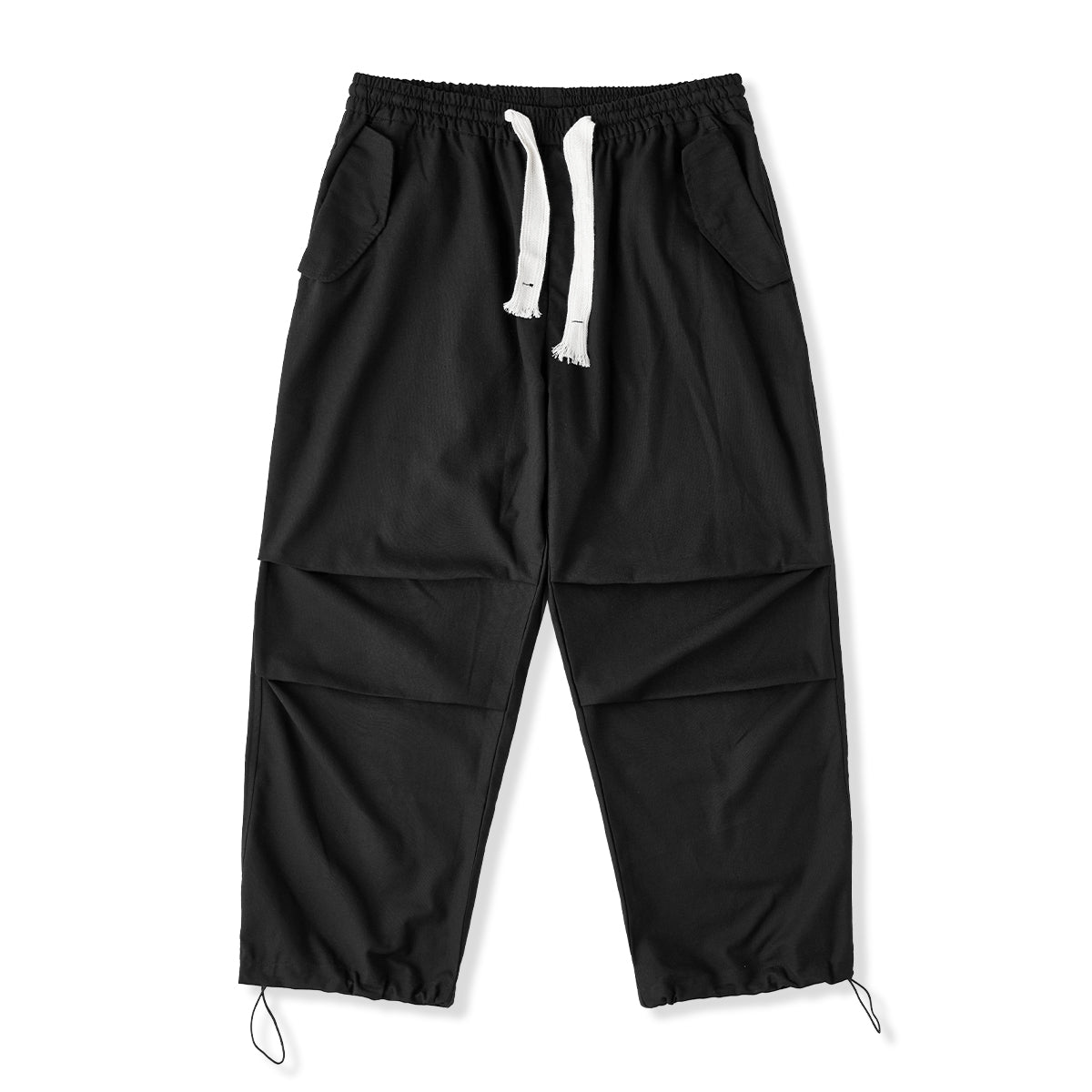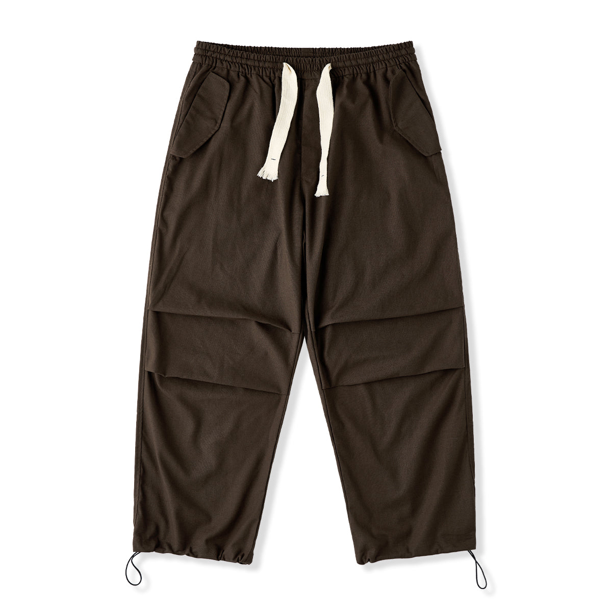 リネン混紡 膝タック入りパラシュート型ワイドイージーパンツ