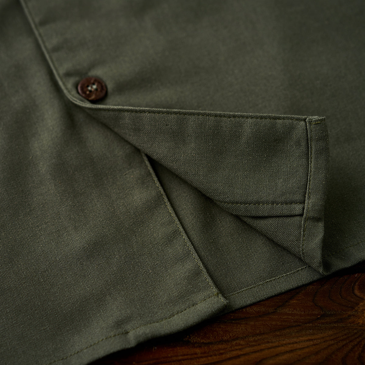 チャイナボタン付き ヨークデニム切り替えツイルシャツ