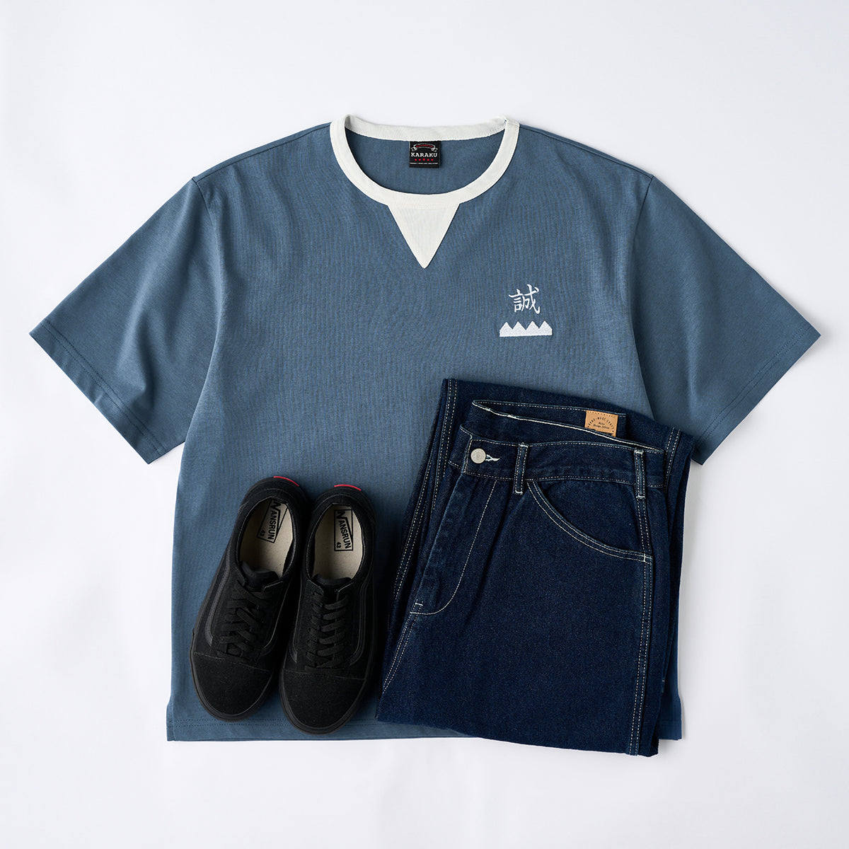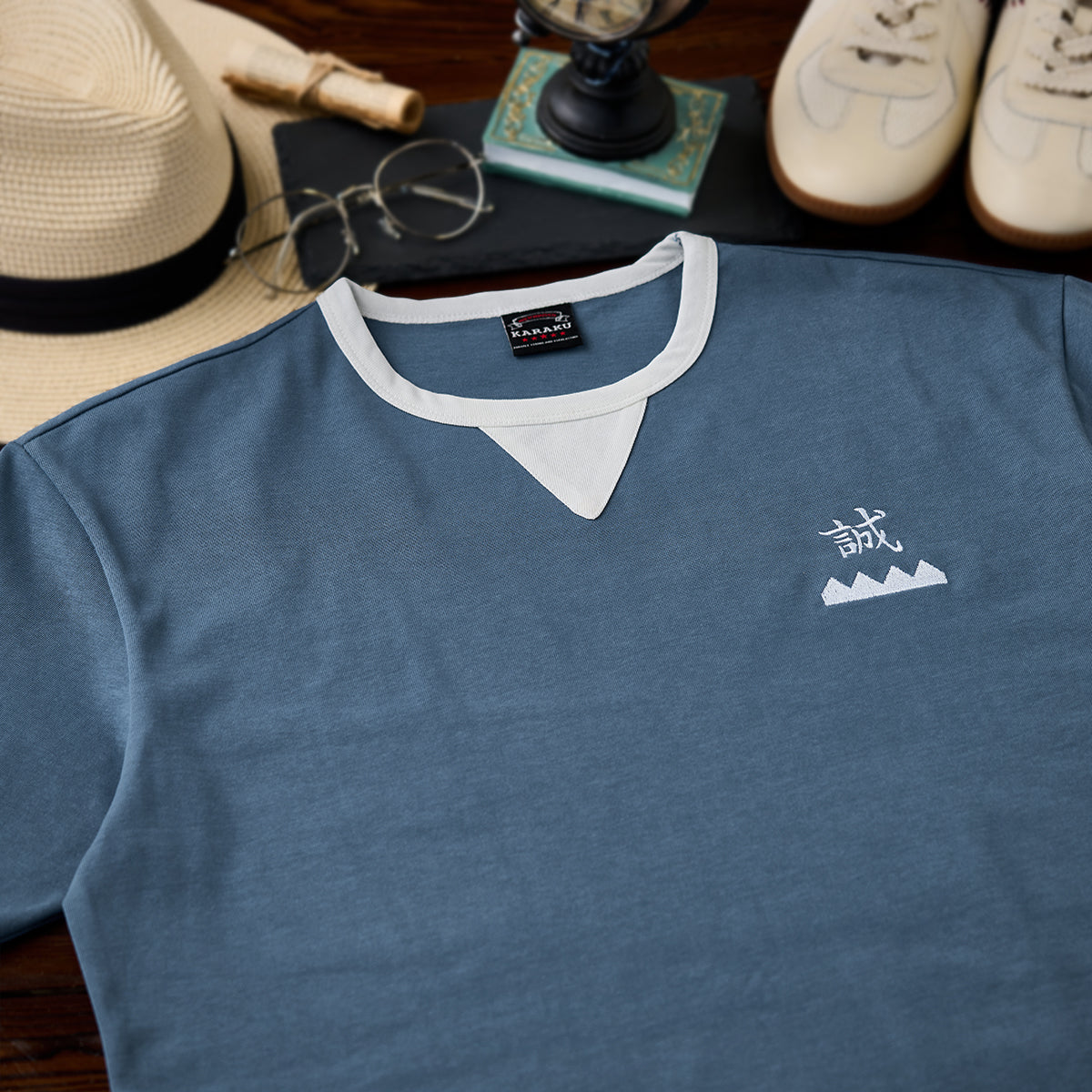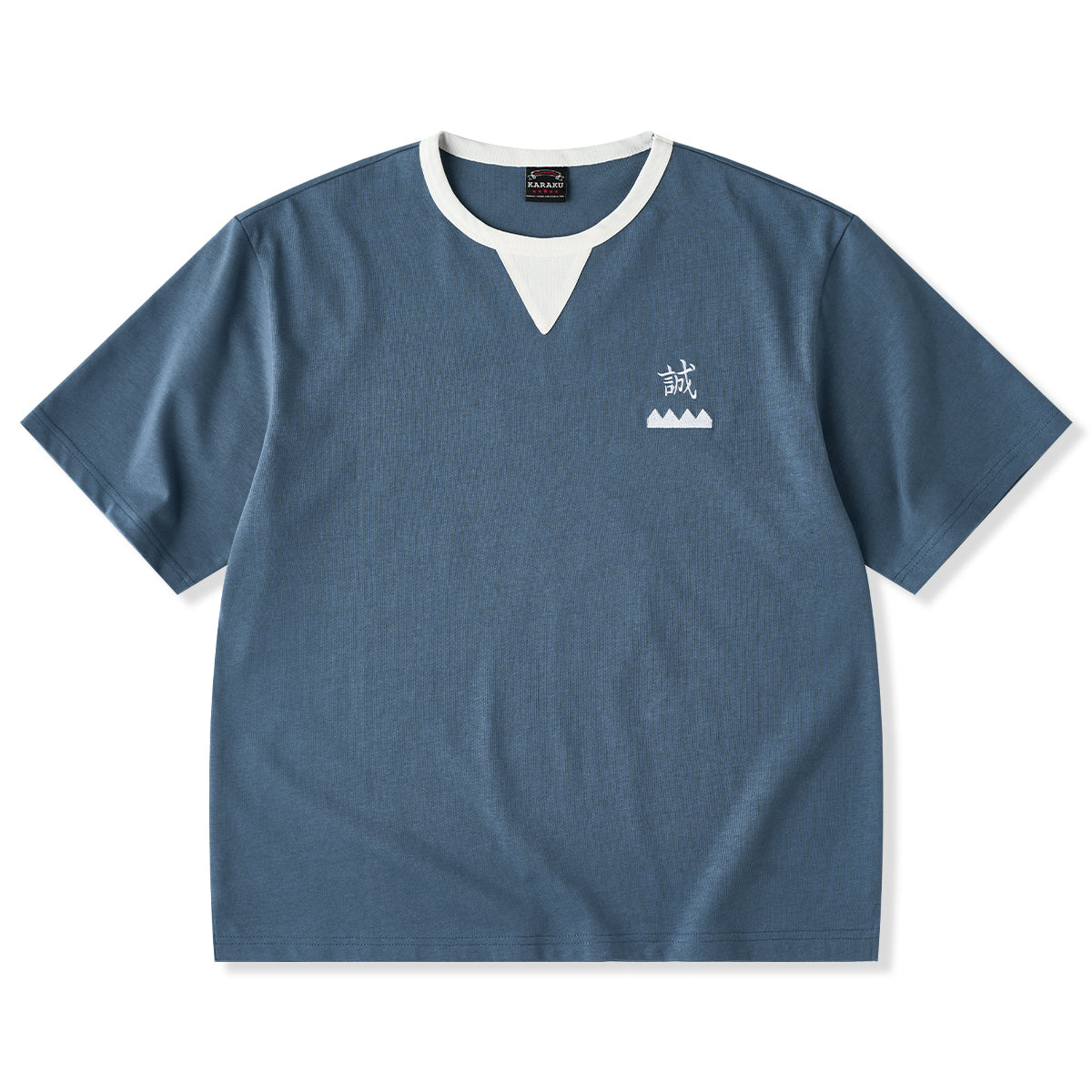 「誠」ワンポイント刺繍 襟配色切り替えコットンTee
