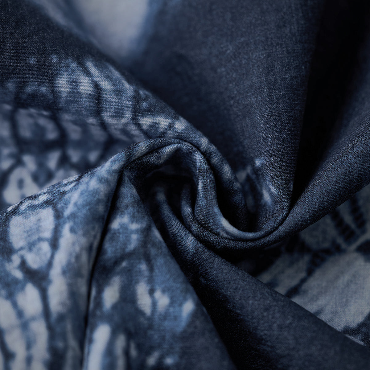 インディゴブルーを基調としたグラデーションは、染料が布に浸透する際の濃淡を忠実に模倣しています。各模様の中心が特に明るく、周囲に濃い色が広がることで立体感を演出しています。