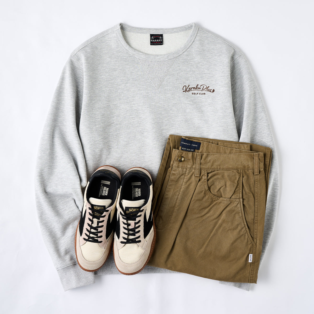 シンプルなチノパン、ブラックジーンズなどとの相性が良いです。カジュアルなシューズやレザーアクセサリーとも組み合わせやすく、幅広いスタイルに対応できます。