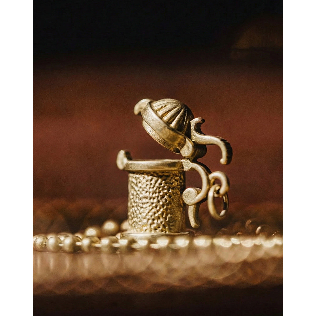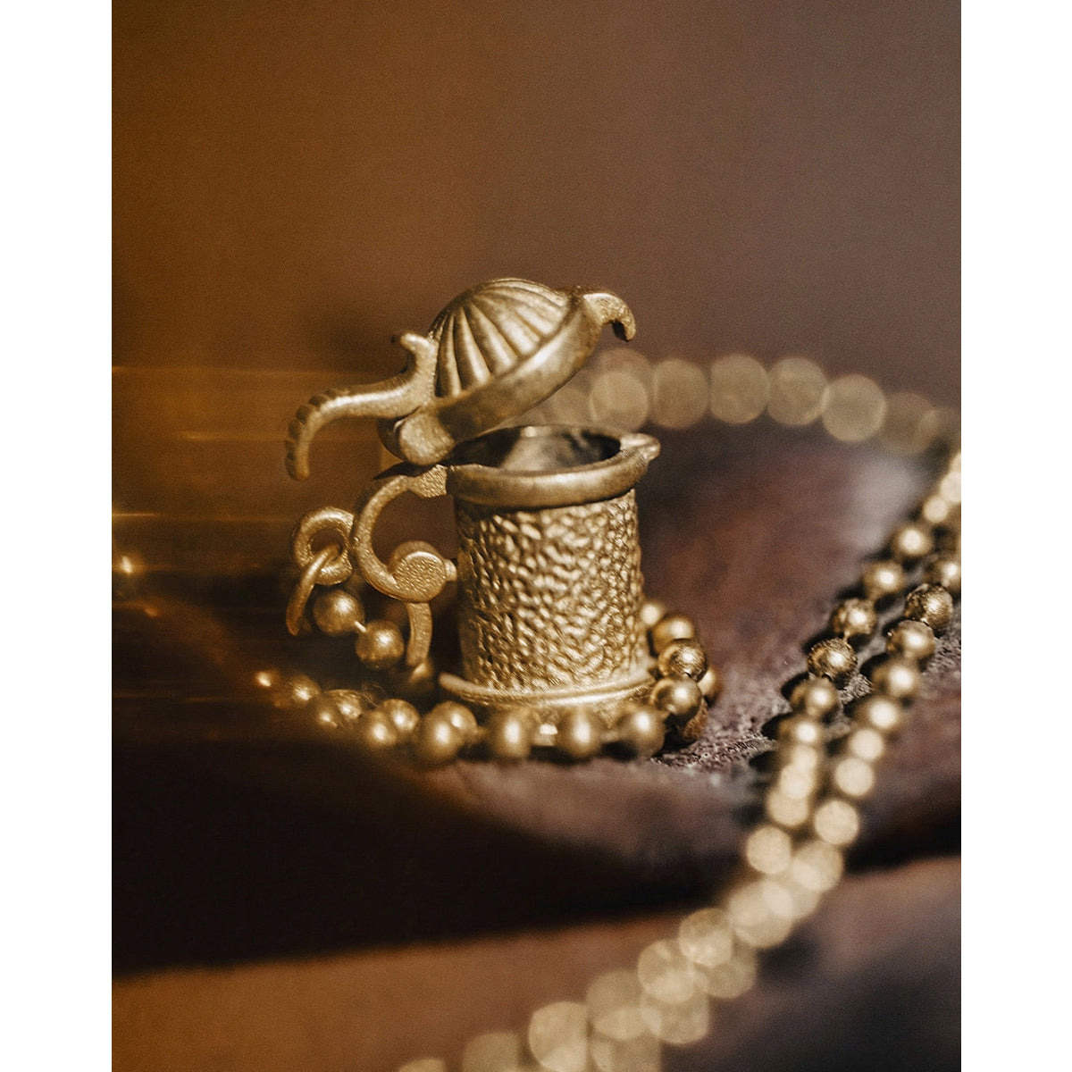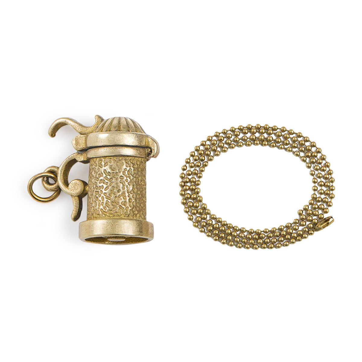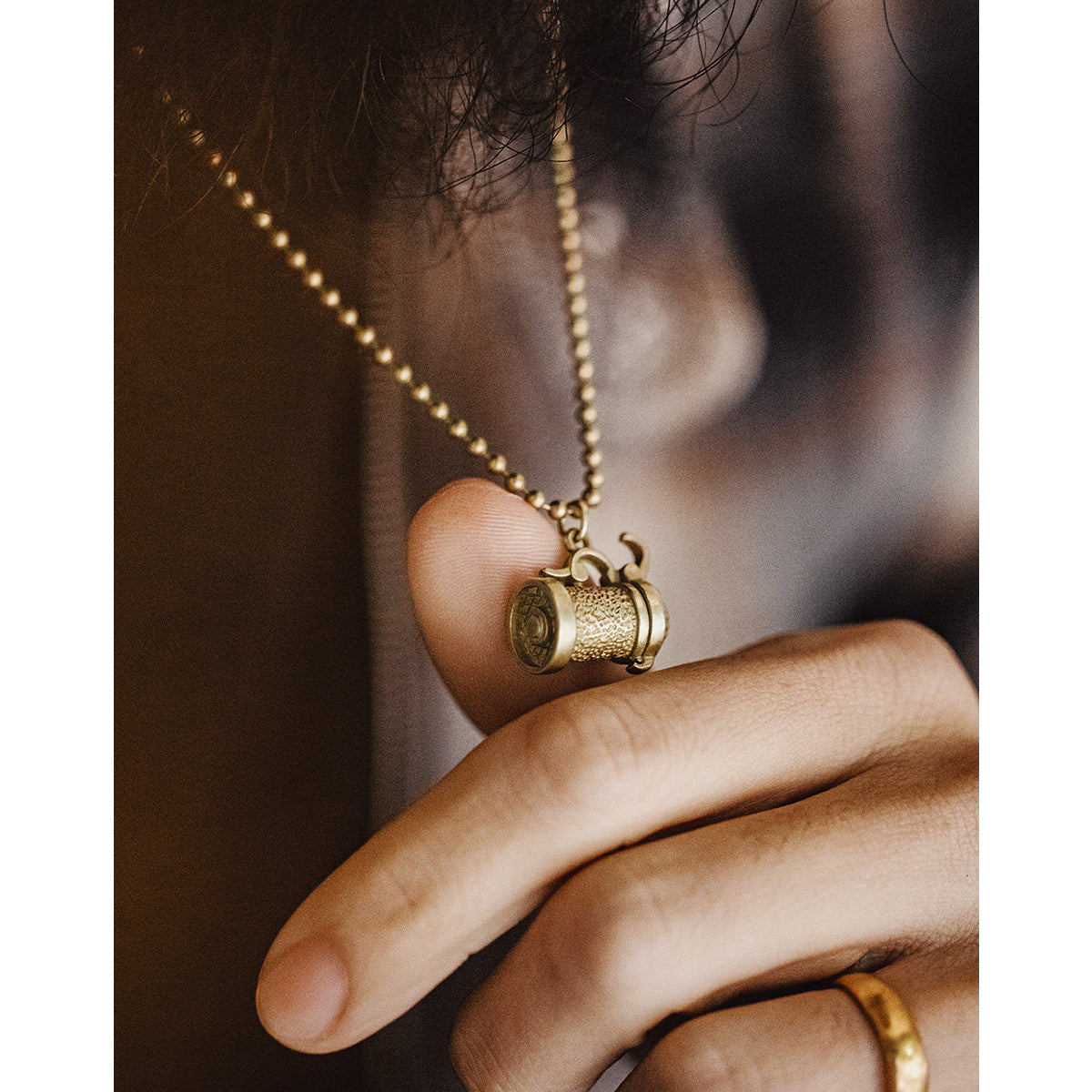表面にはひとつひとつ表情の異なる槌目仕上げを施し、真鍮ならではの深みある光沢と、使い込むほどに増す経年変化を楽しめるデザインに仕上げました。小ぶりなケトルが、主張しすぎず胸元にさりげない存在感を添えます。チェーンには細身のビーズチェーンを採用。ペンダントトップとのバランスが良く、シンプルなTシャツからシャツ、ニットまで幅広いスタイリングに自然に馴染みます。装いにさりげない物語性とクラフト感を加える一本。日常使いはもちろん、ギフトにもおすすめのアクセサリーです。