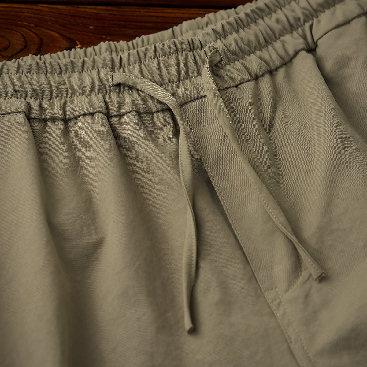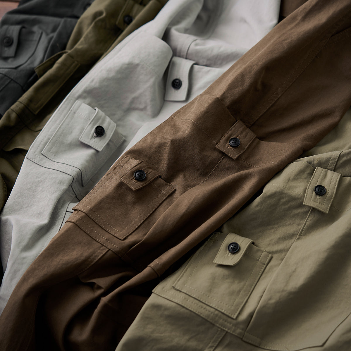 ミリタリーパラシュートパンツをベースに仕上げた、リラックス感あるカーゴイージーパンツ。膝部分にタックを入れることで立体的なシルエットを演出し、動きやすさと無骨な表情を兼ね備えています。ウエストはイージー仕様で快適な穿き心地を実現。裾にはドローコードを備え、シルエットを自在にアレンジ可能。カーゴポケットを配置することで、機能性とデザイン性を両立しました。シンプルなトップスとも好相性で、ストリートからアウトドアまで幅広く活躍。多色展開で、スタイルや気分に合わせた一本を選べます。