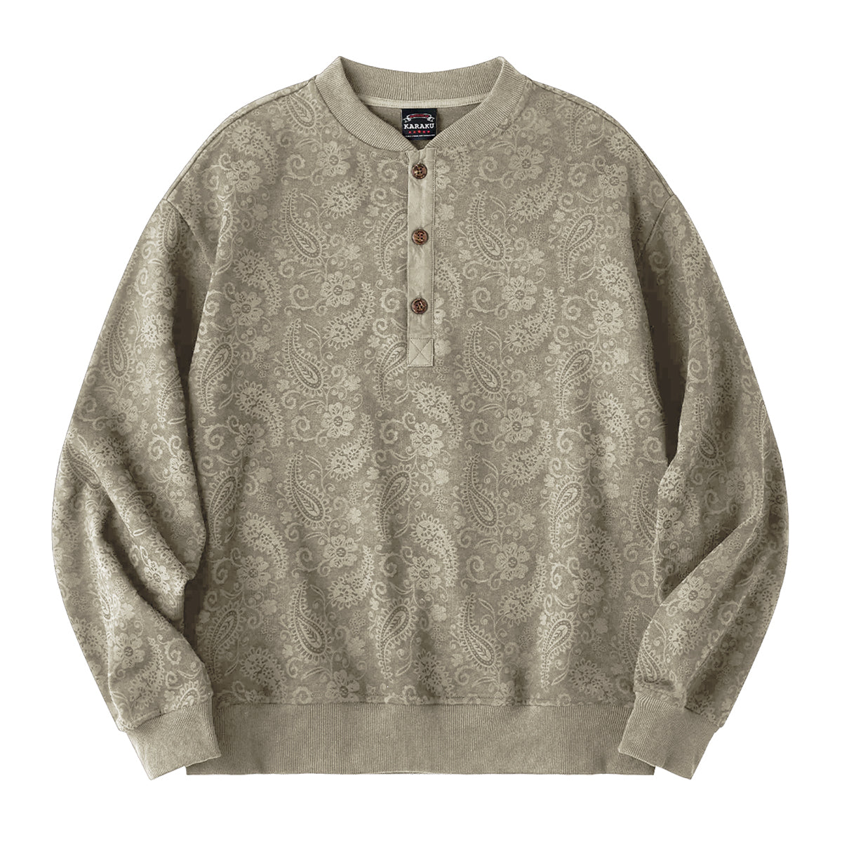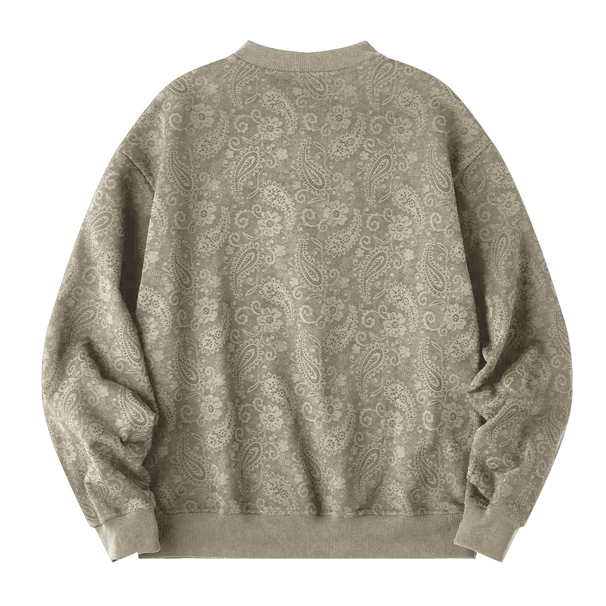 【予約】ウォッシュ&ユーズド加工 ペイズリー総柄ハーフボタンスウェット 新色追加!