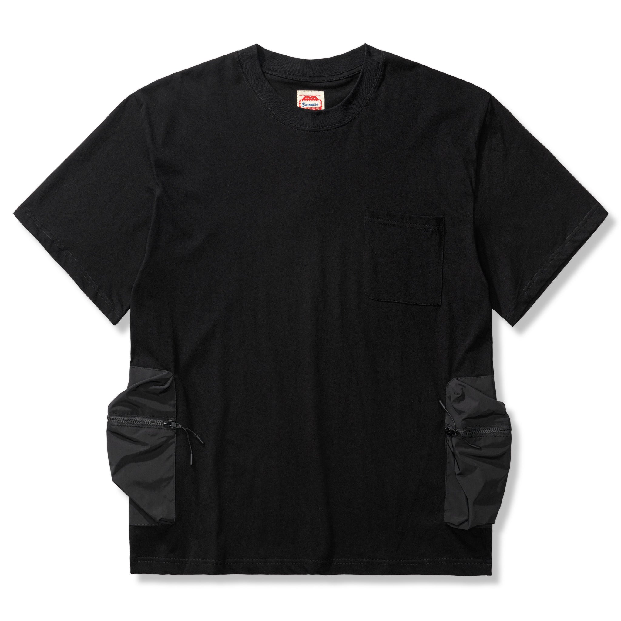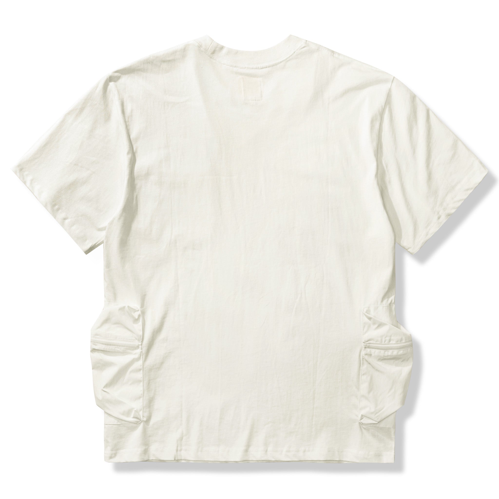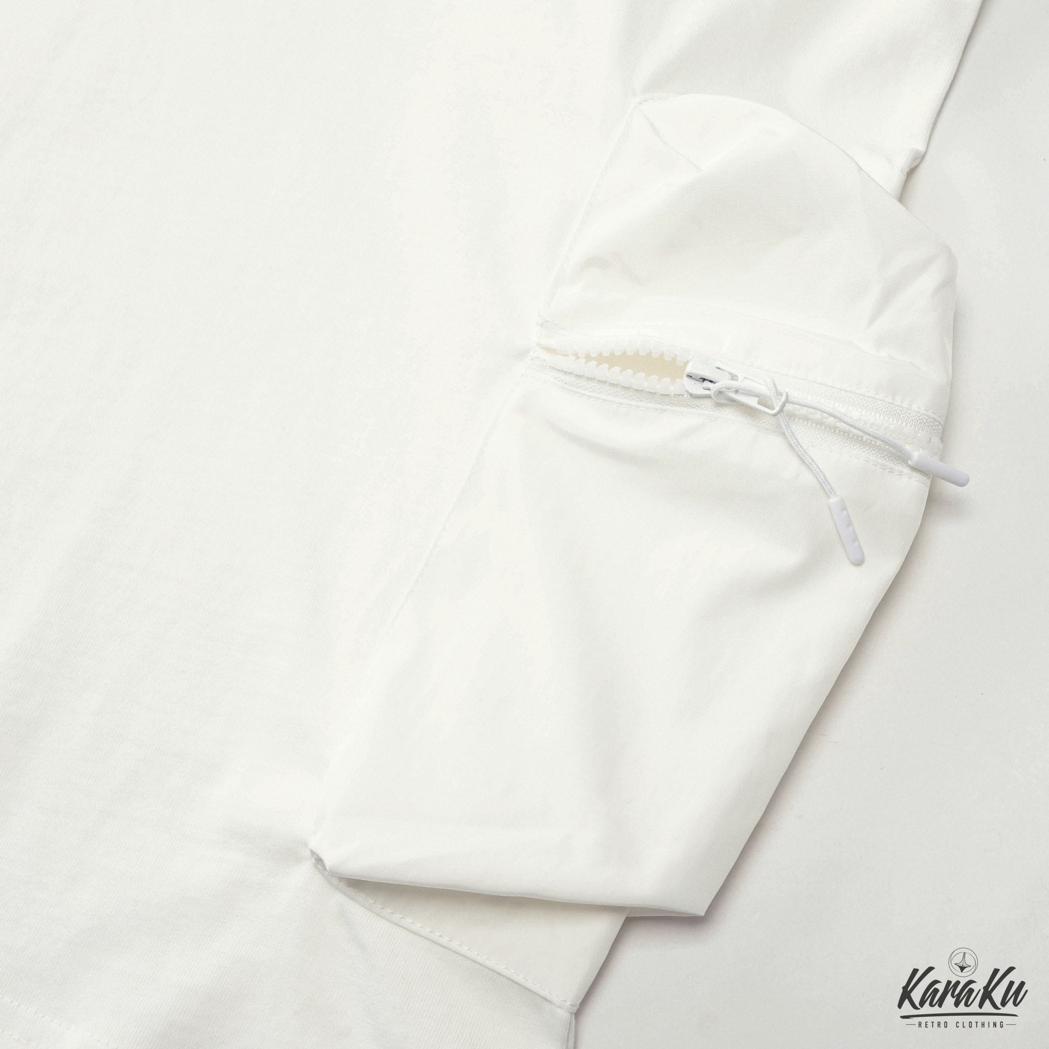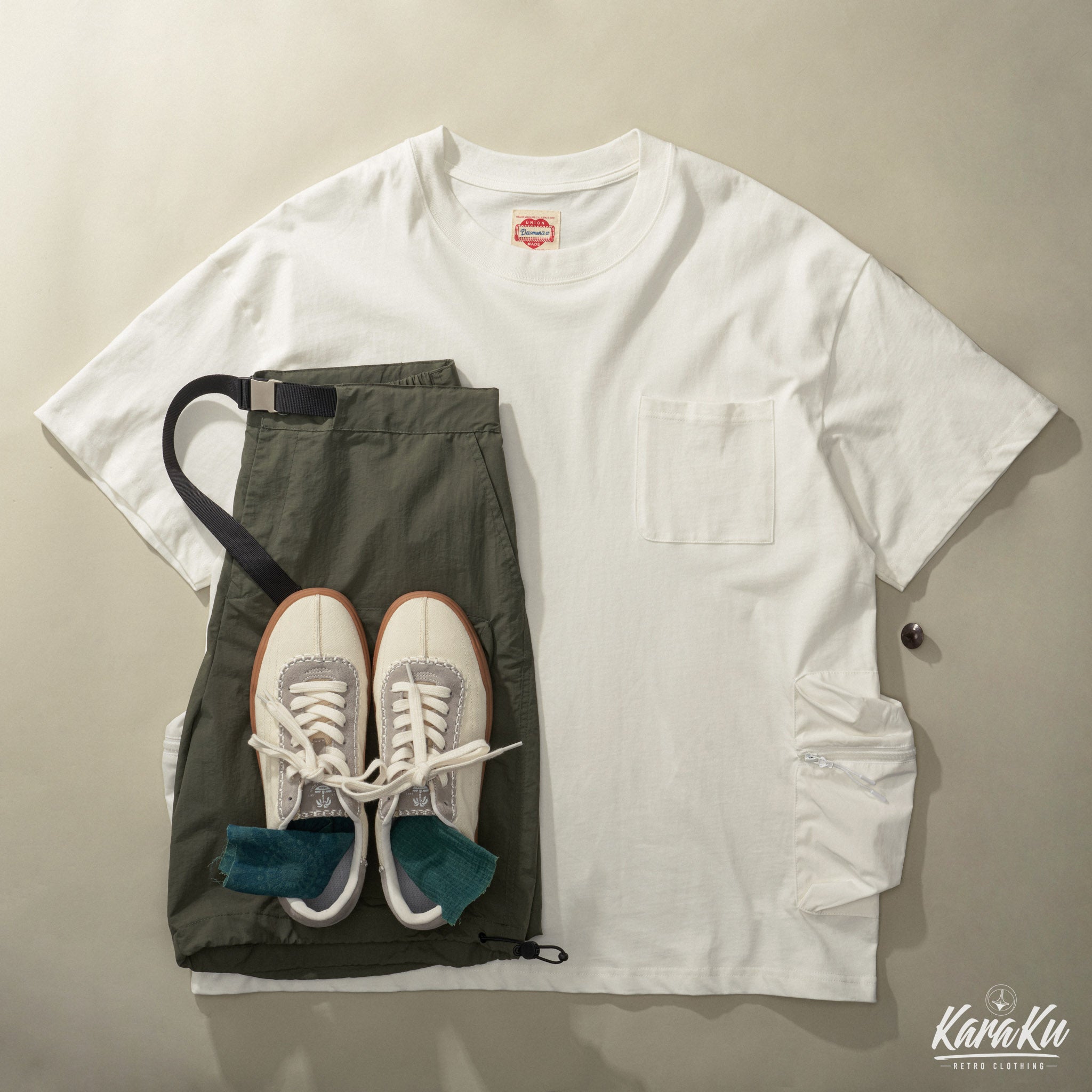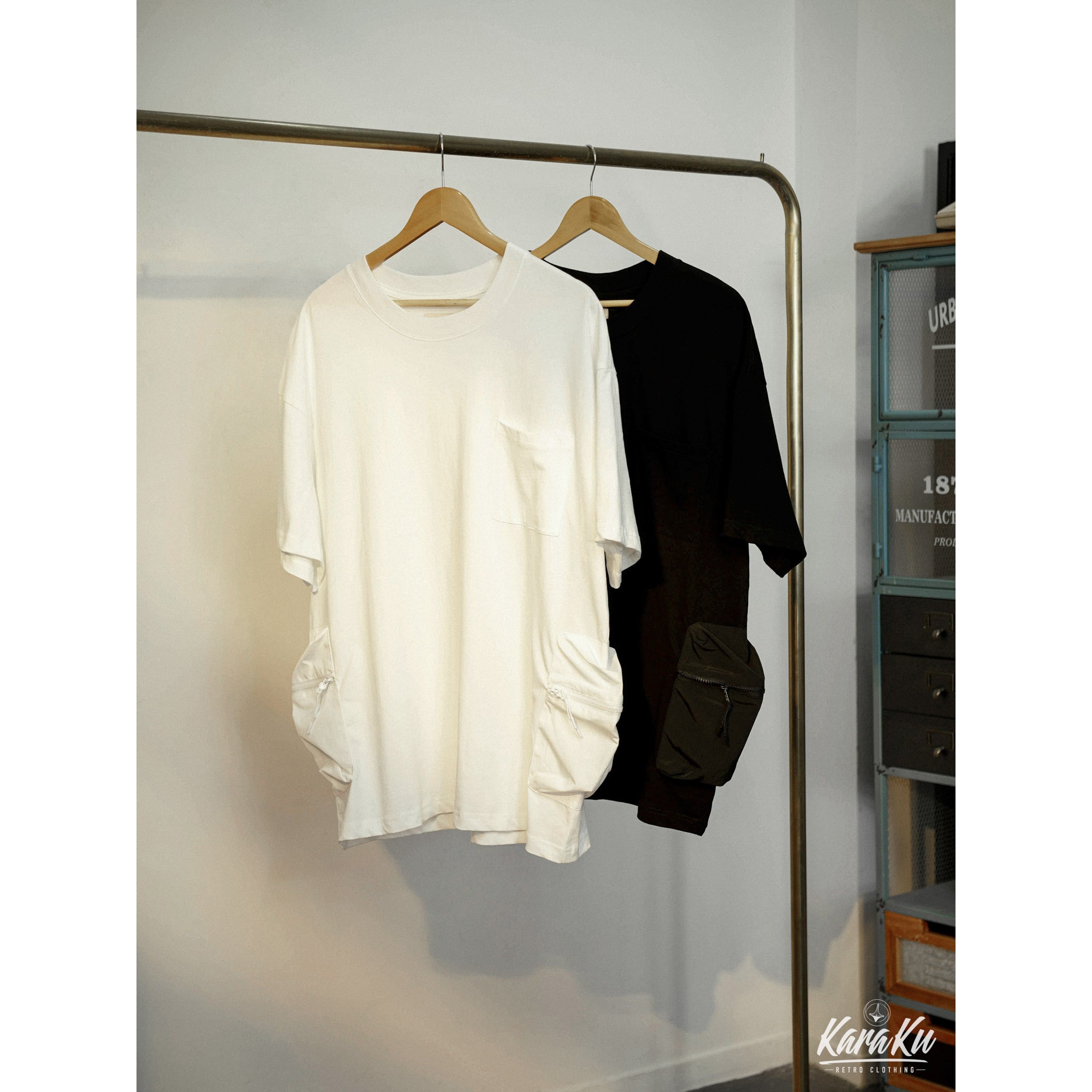 両サイドにジップ付き機能ポケットを二つあしらって、小物を落とさないように実用性が高い。左胸元にも小さめのポケット配置し、ワークテイストを味付け。