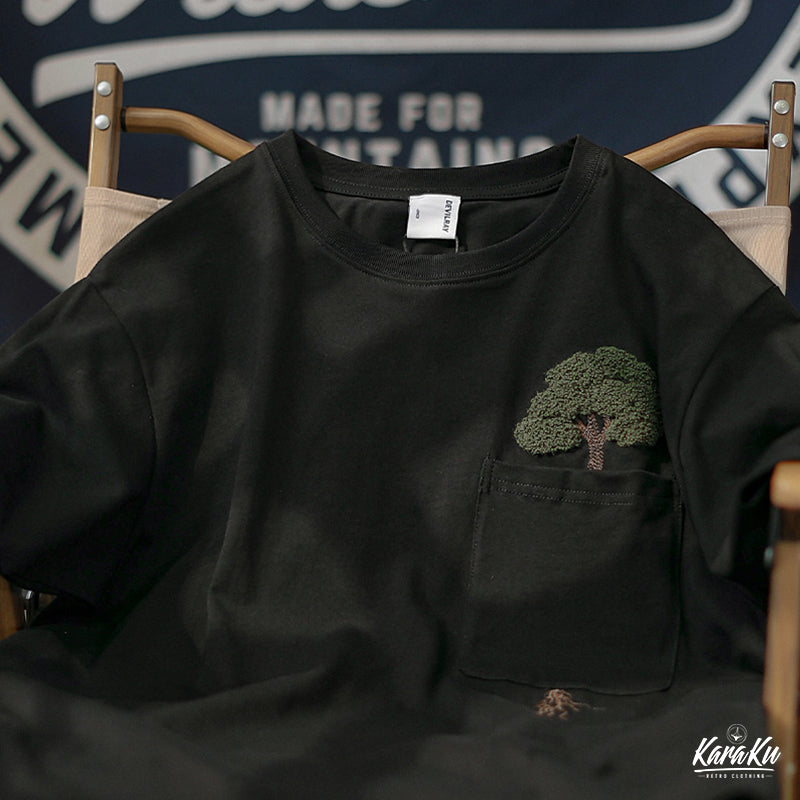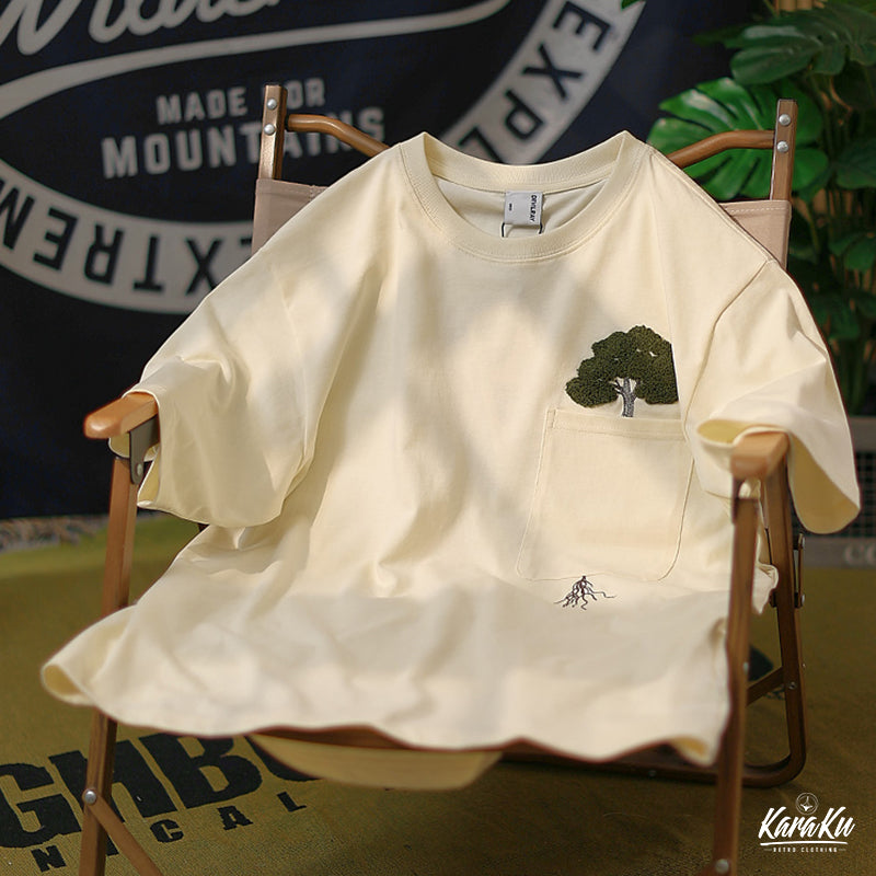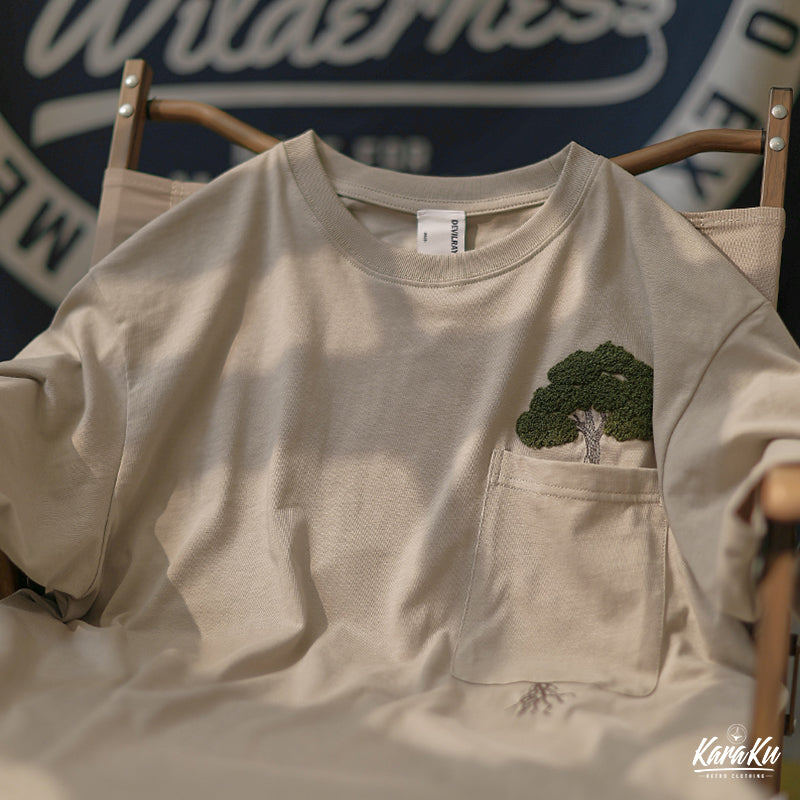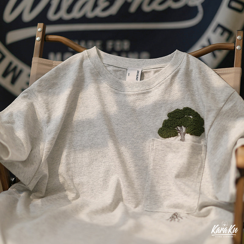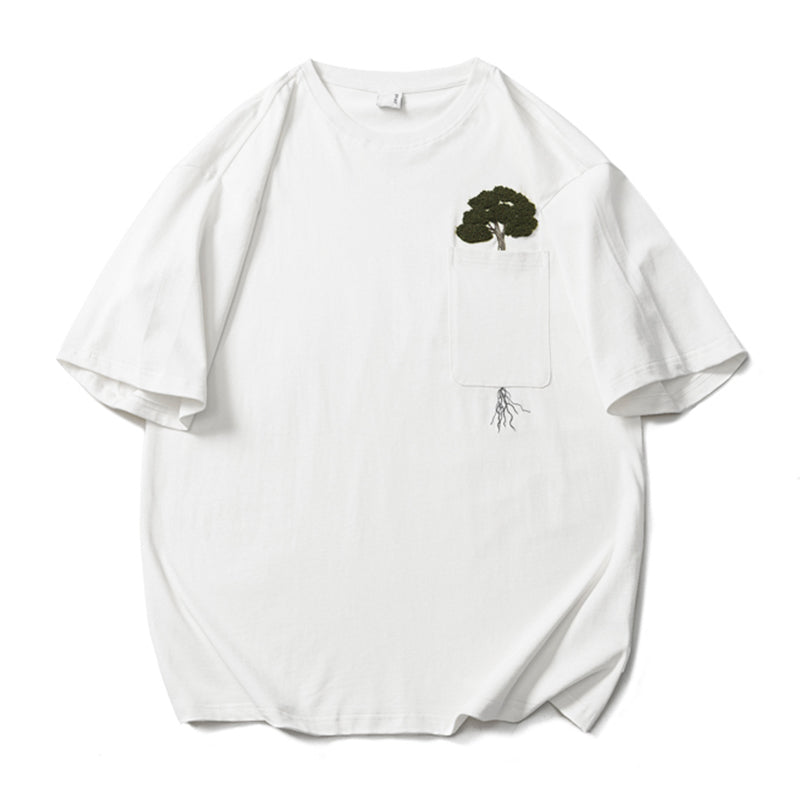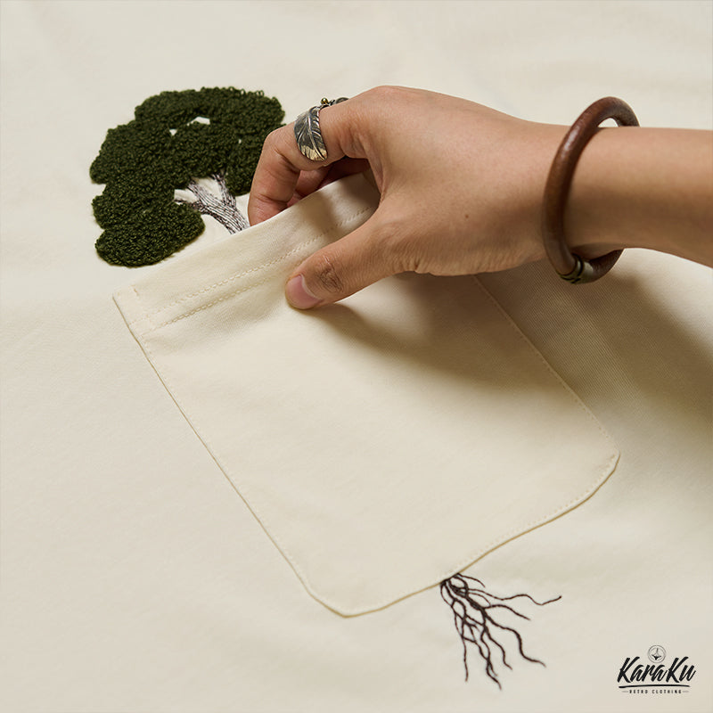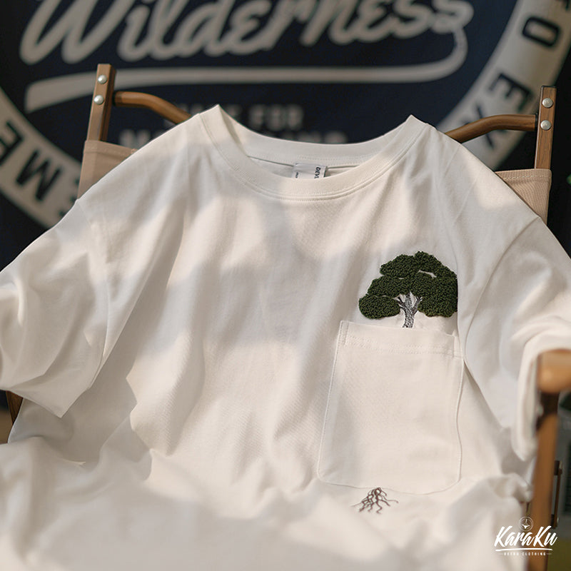 「木はポケットの中で育つ」サガラ刺繍コットンTee