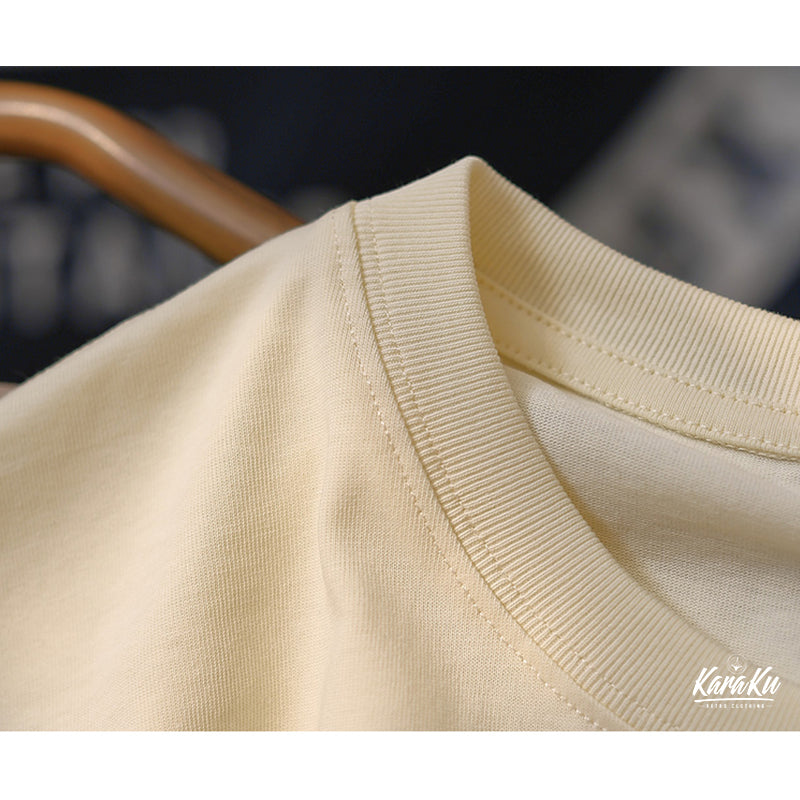 ネックにはリブを配置し、型崩れもしにくいようネック口周りはダブルステッチで仕上げられている。