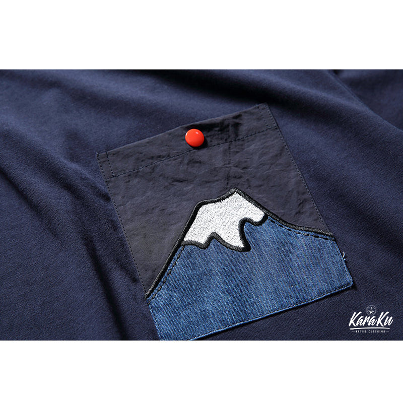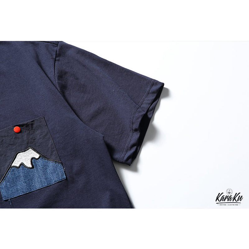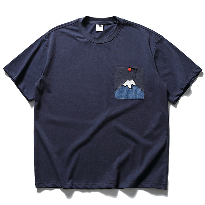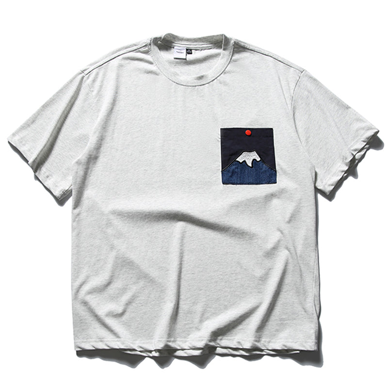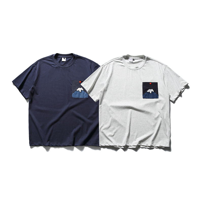 「朝日の富士」パッチポケット付きコットン半袖Tee