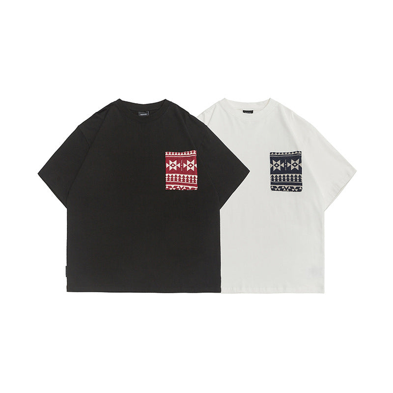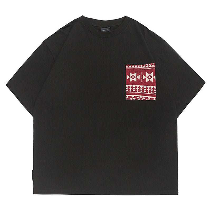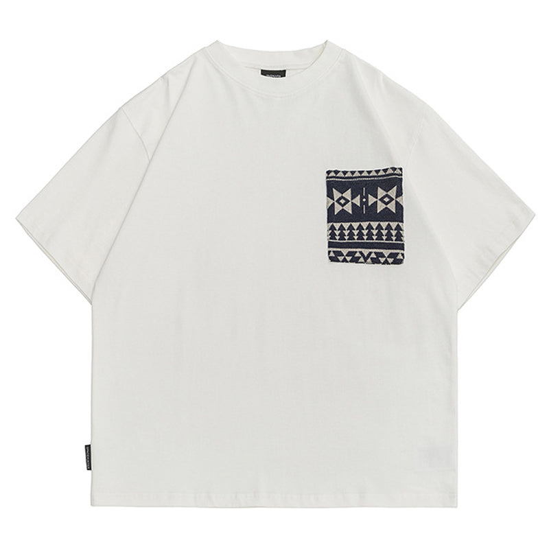 幾何学柄ニットポケット付きコットンTee