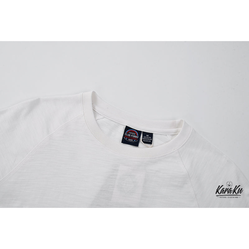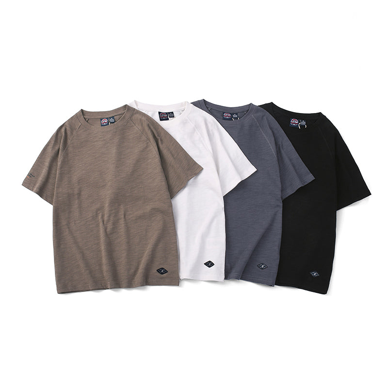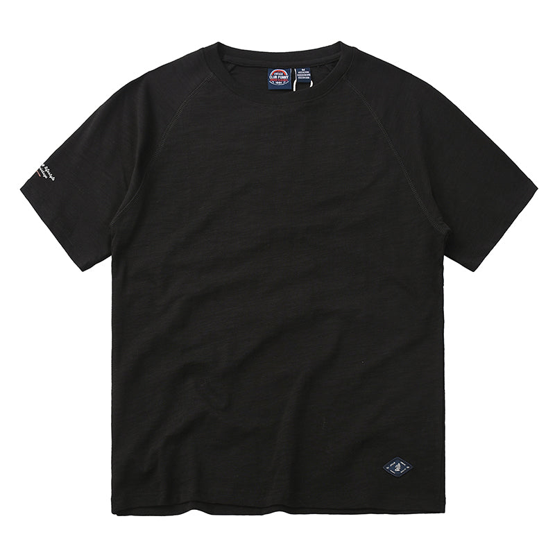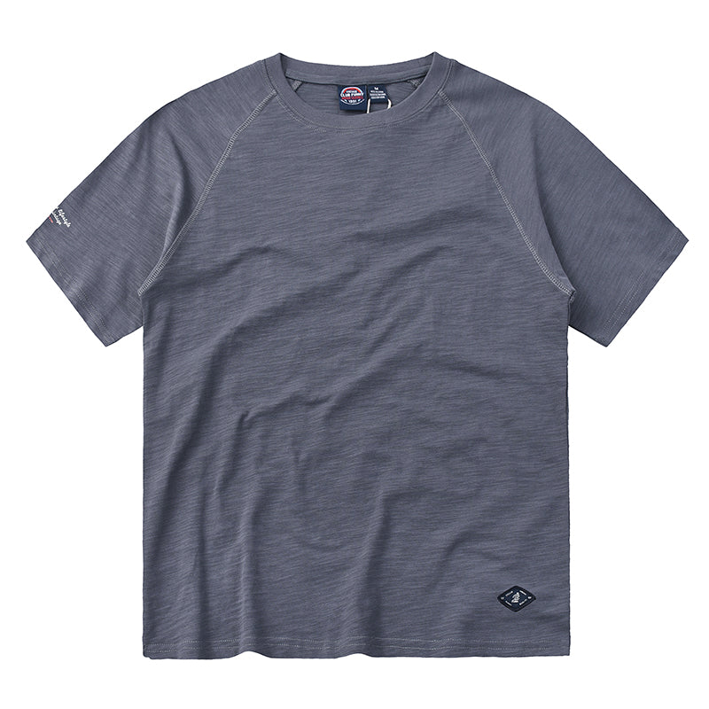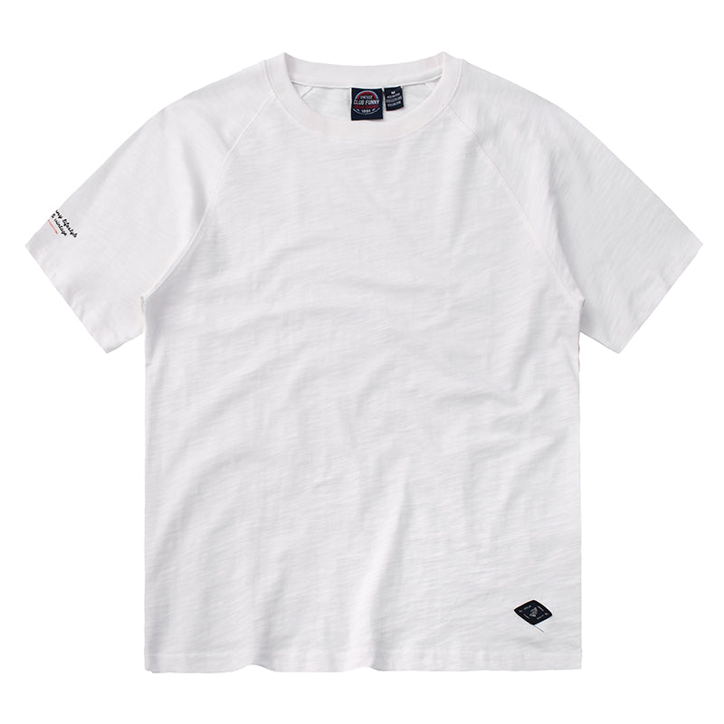 ワンポイント入り 230g スラブコットン無地ラグランスリーブtee