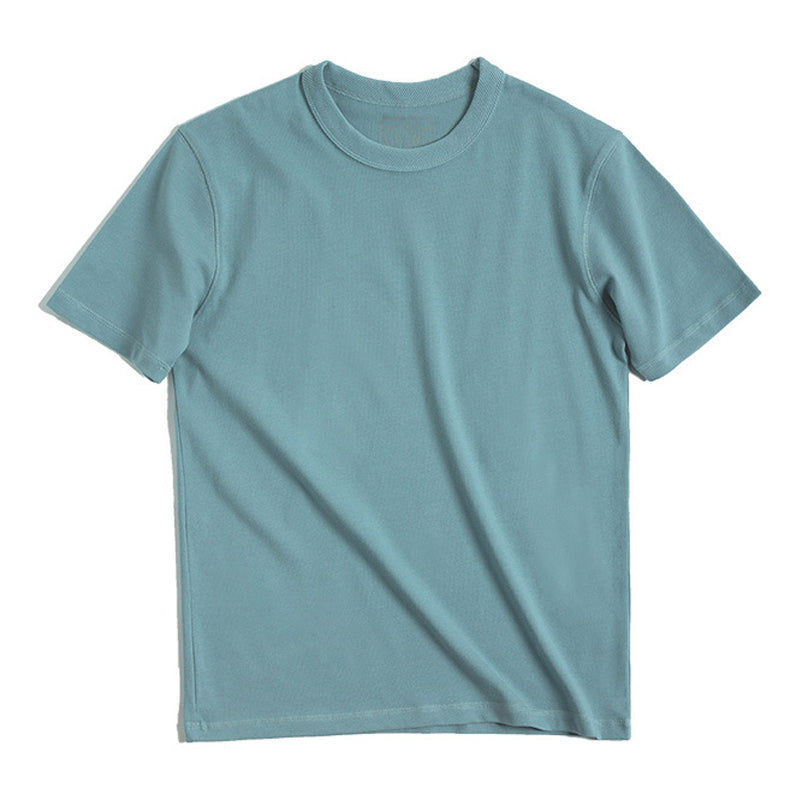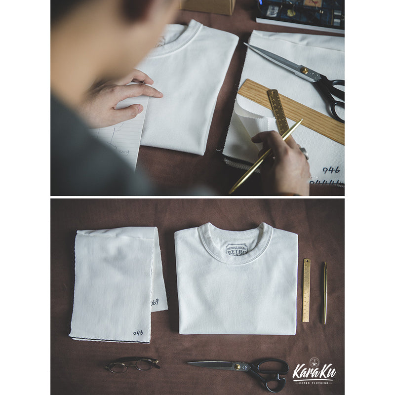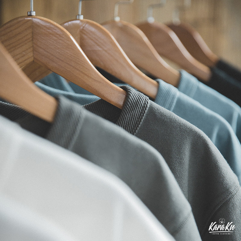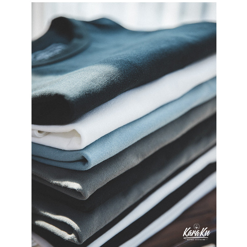 This item uses sanding processing, and in addition to the standard white and calm black, we added airy blue to enjoy summer. The point that color variations are nice. Mainly made of cotton fabric, it has softness and texture, ribs are placed on the neck, and the body is made of thick cut and sewn fabric that does not lose its shape even after repeated washing, and the neck is finished with triple stitching so that it does not lose its shape. and match the retro vibe and summer mood.