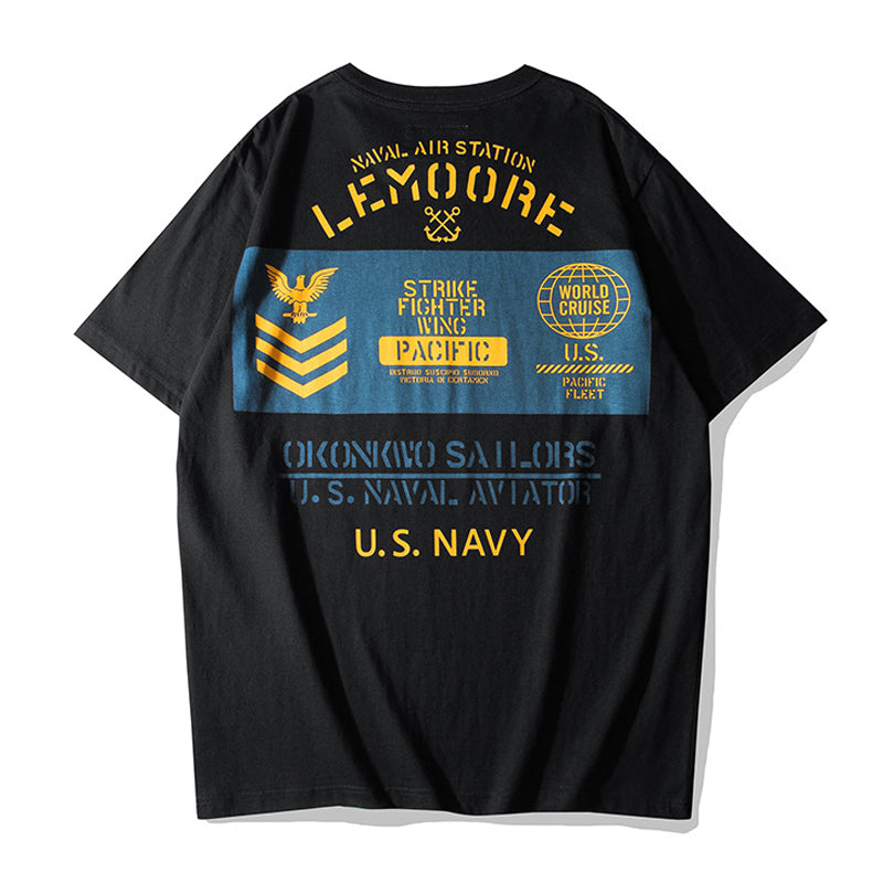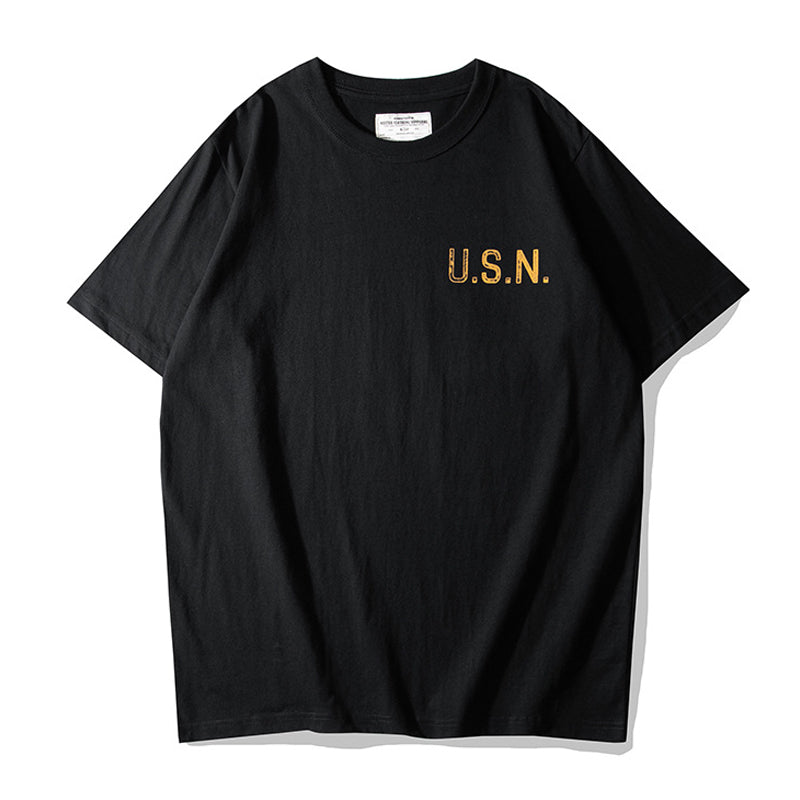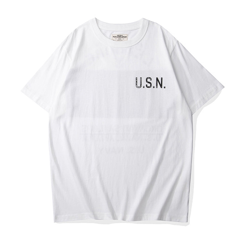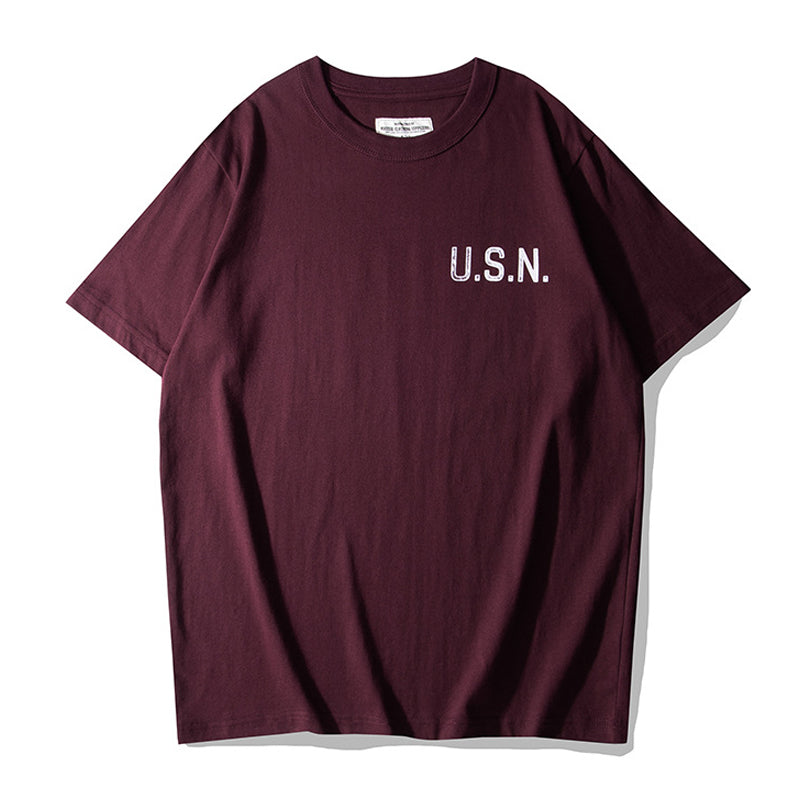 ミリタリー風男らしさ満載のTシャツが登場!バックのプリントは武骨な雰囲気でミリタリーの要素を感じさせる。抜染プリントを施すことでフェード感のあるカラーと独特のヴィンテージ感を思わせる風合いがポイントです。ちょうどいいレギュラーフィットのシルエットは、カジュアルなTeeながらも上品さを感じさせる一点です。カラーは清潔感がたっぷりのホワイト、レトロなワインレッド、スタイリッシュな大定番のネイビー、様々なコーデで万能に着れるブラックの4色展開。コーデの主役としてはもちろん、インナーとしても活躍してくれるのでオールシーズン着用できる定番アイテムです。