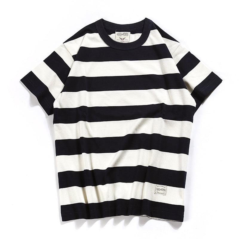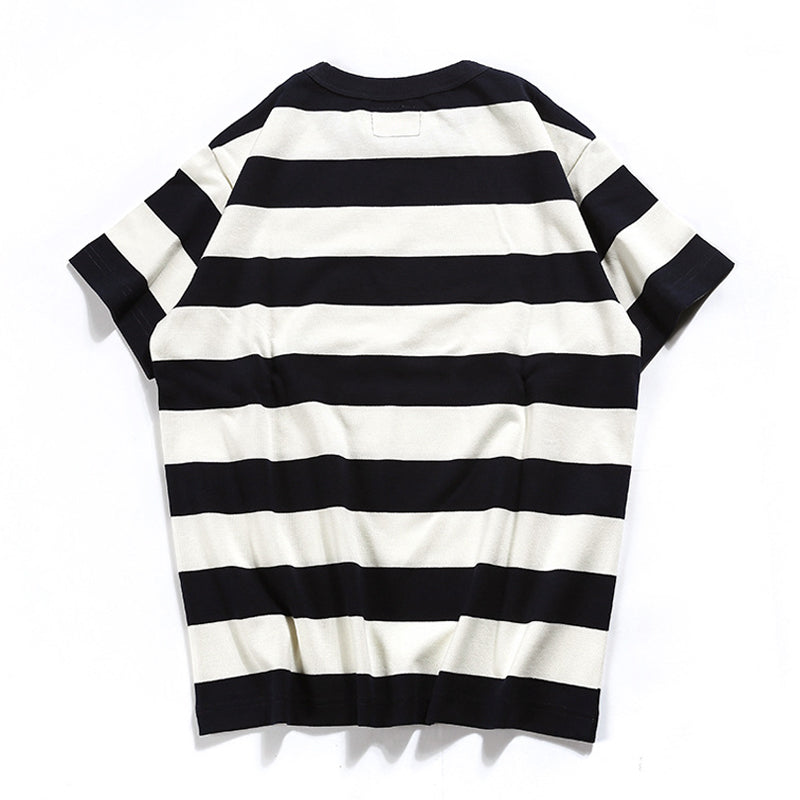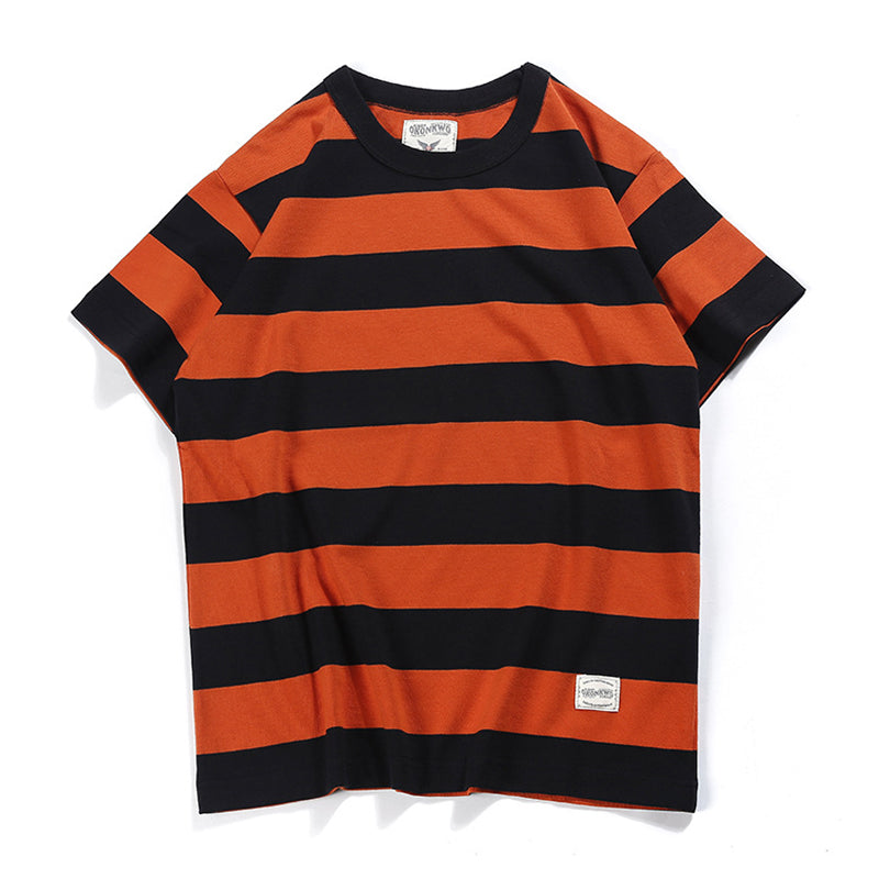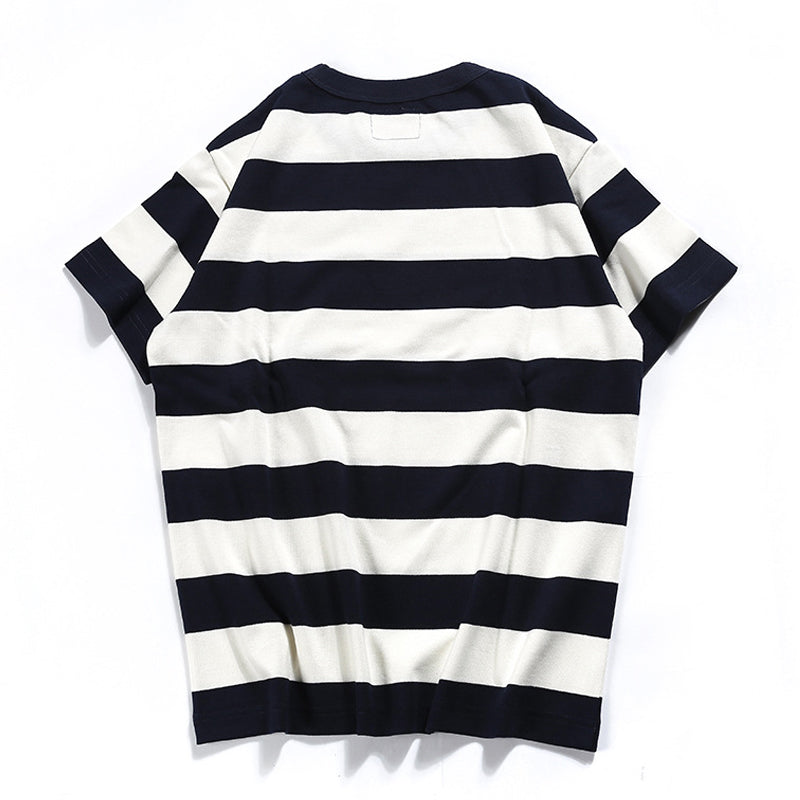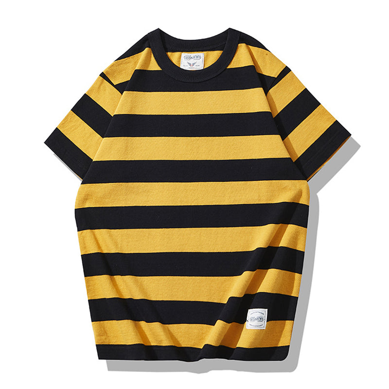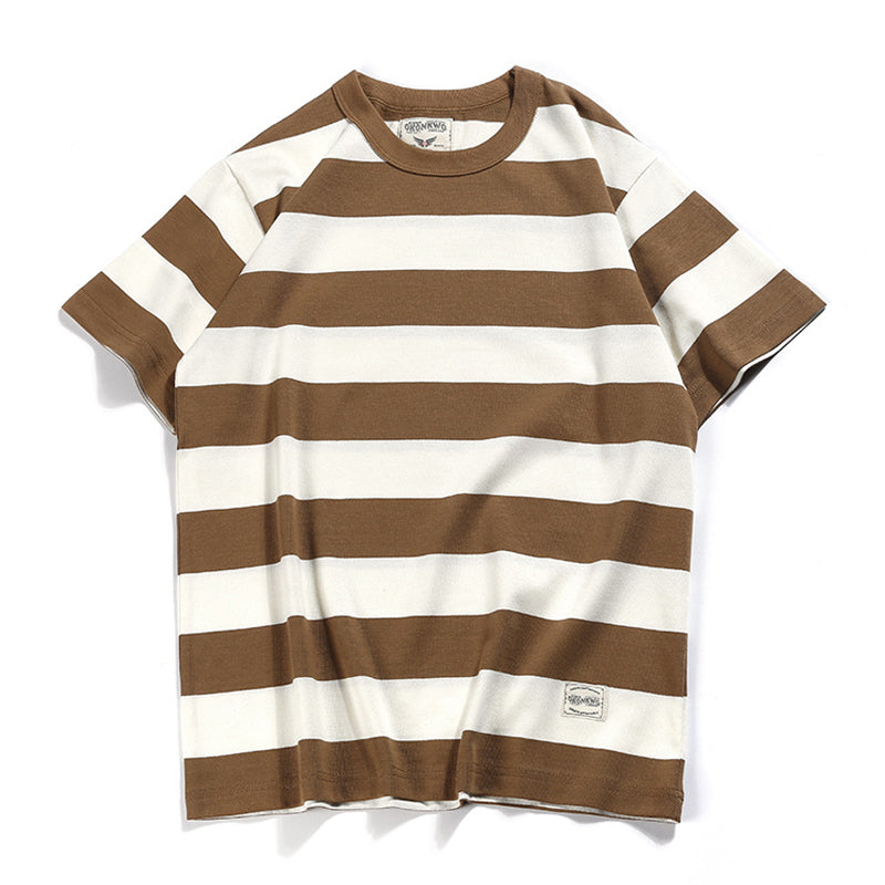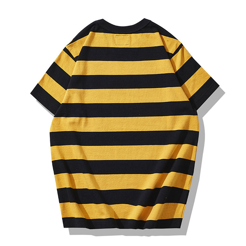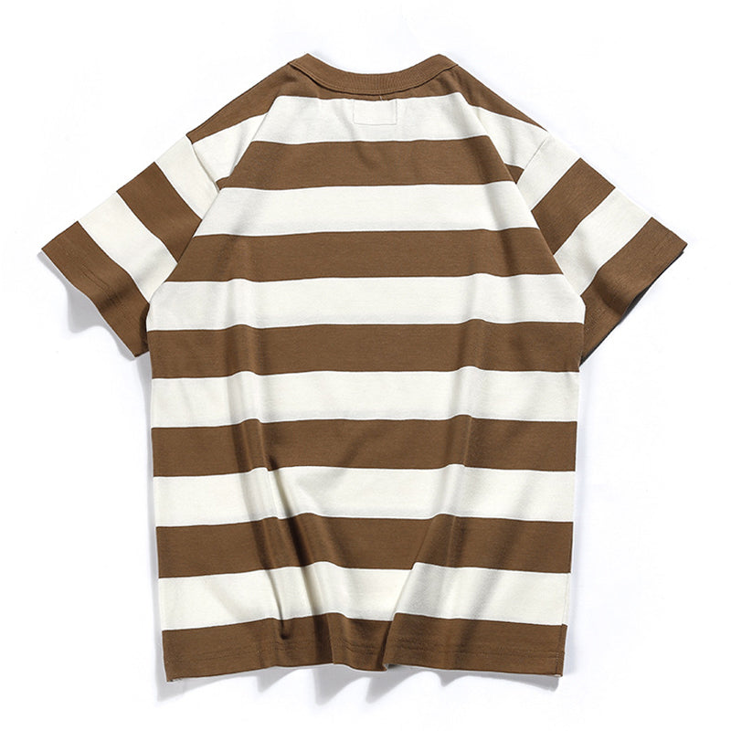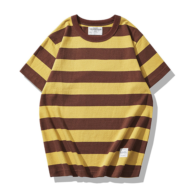 Introducing a striped T-shirt that creates a cool and refreshing atmosphere.