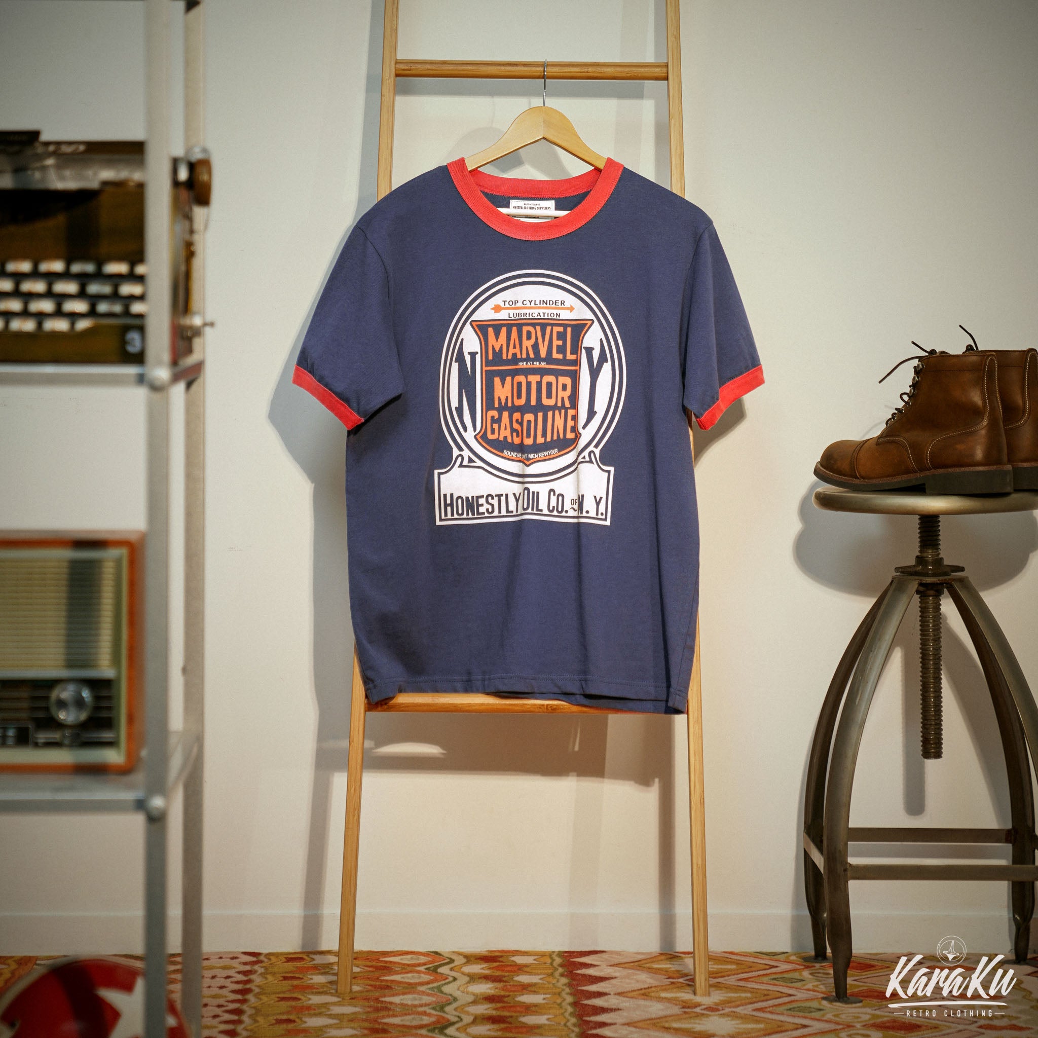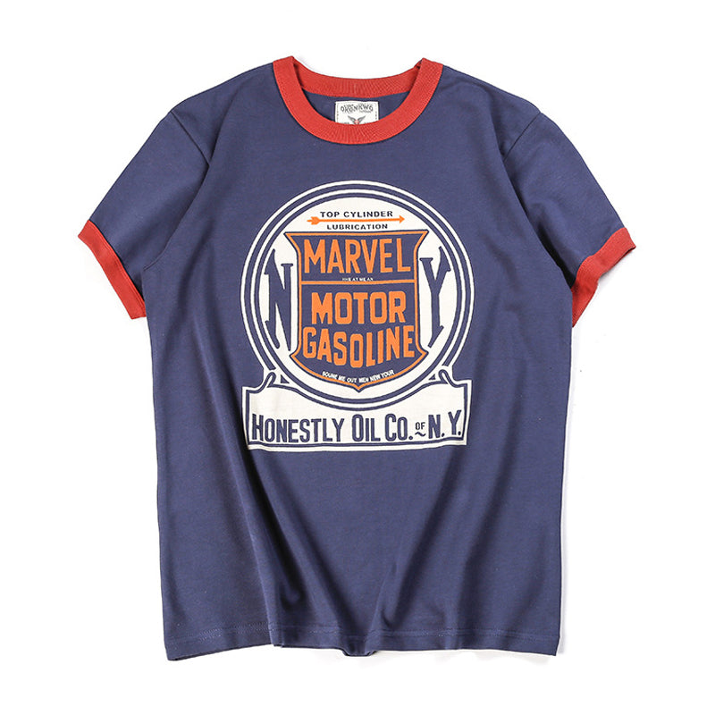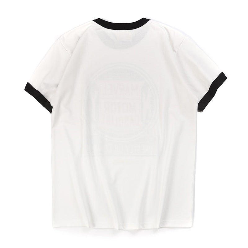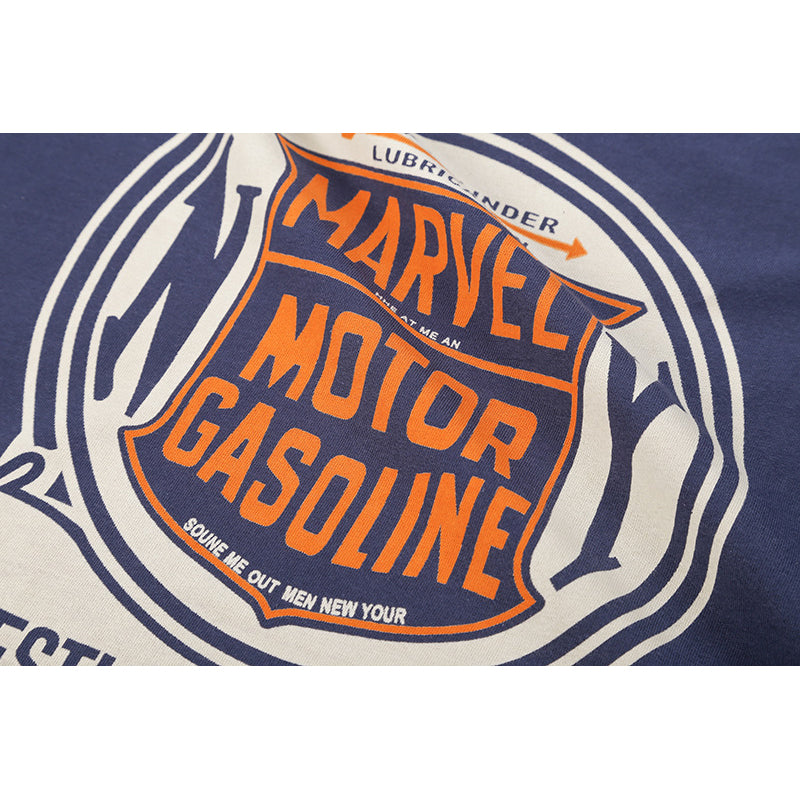 This item has a distinctive color scheme that adds spice to your outfit. The accent color makes it look good even if you wear it plain, and if you print it in the same color as the piping part, it will be a cohesive design T-shirt. It uses a cotton material with a weight of 230g, has excellent sweat absorption and quick drying properties, and is comfortable to wear. With a marvel motor gasoline print, the American casual style and street style point vintage design make you look stylish and mature. It is also recommended to buy it as a unique item in the many T-shirt collections, and it goes well with vintage lovers and trendy second-hand clothing mixes.