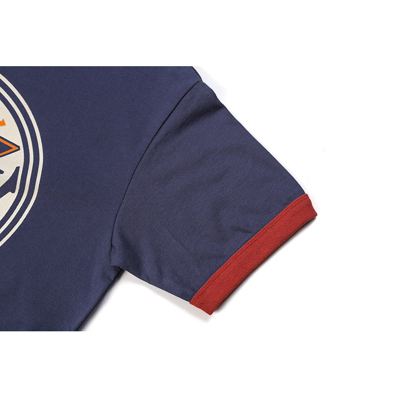 A ringer t-shirt is a t-shirt with piping on the neck and sleeves. The collar and cuffs have ring-shaped reinforcement thickness, and the feature is that the part contains the accent color. The name Ringer T-shirt derives from the English word “ring,” which means “wheel.”