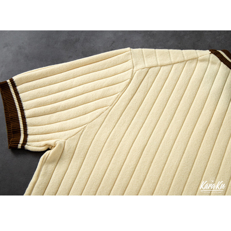 ティップラインを配したニットTシャツが登場!シンプルでありながら配色バランスにこだわりがあるアイテムです。伸縮性のあるリブの編地がボディラインに程よくフィット。上半身をすっきりと見せてくれます。裾にリブが入りで、タックインしなくても腰にフィットし、だらしなく見えません。ちょうどいいレギュラーフィットのシルエットは、カジュアルなポロシャツながらも上品さを感じさせる一点です。