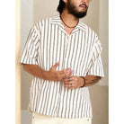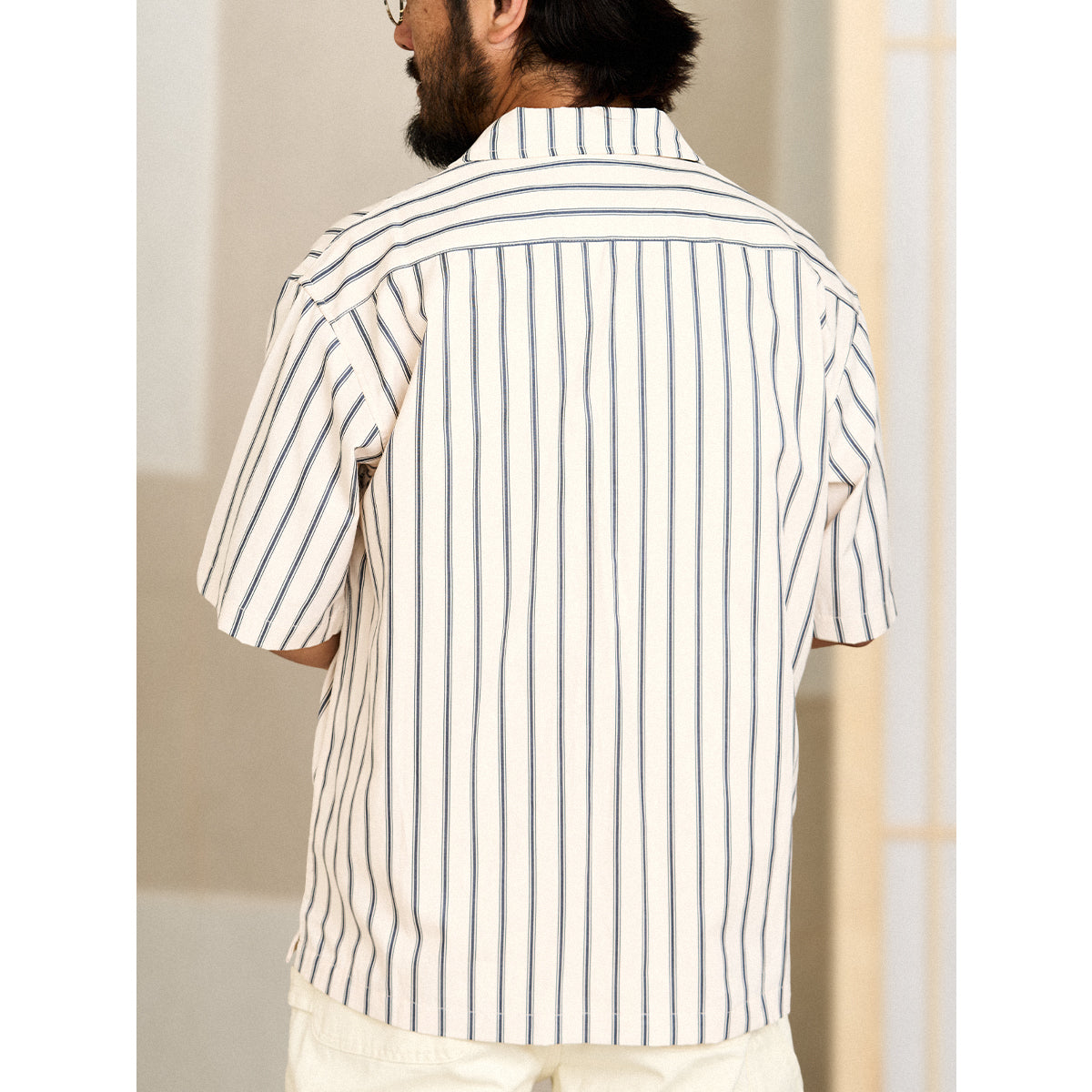大人の落ち着きを感じるキューバカラーシャツが登場!洗練された大人カジュアルカラーのベージュを基調として、モダンなトリプルストライプ柄と相まって程良いイタリアンテイストを演出してくれた一枚です。コーディネートに取り入れやすい落ち着いたカラーリングですが、デザインの面では、襟元はオープンカラー仕様で、首周りの締め付けがなく快適に着用できます。ドロップショルダーでゆったりとしたサイズ感で、トレンドを抑えたシルエットは大人の為の1枚です。抜け感のあるサイドスリットがこなれ感あふれるスタイルに仕上がった。