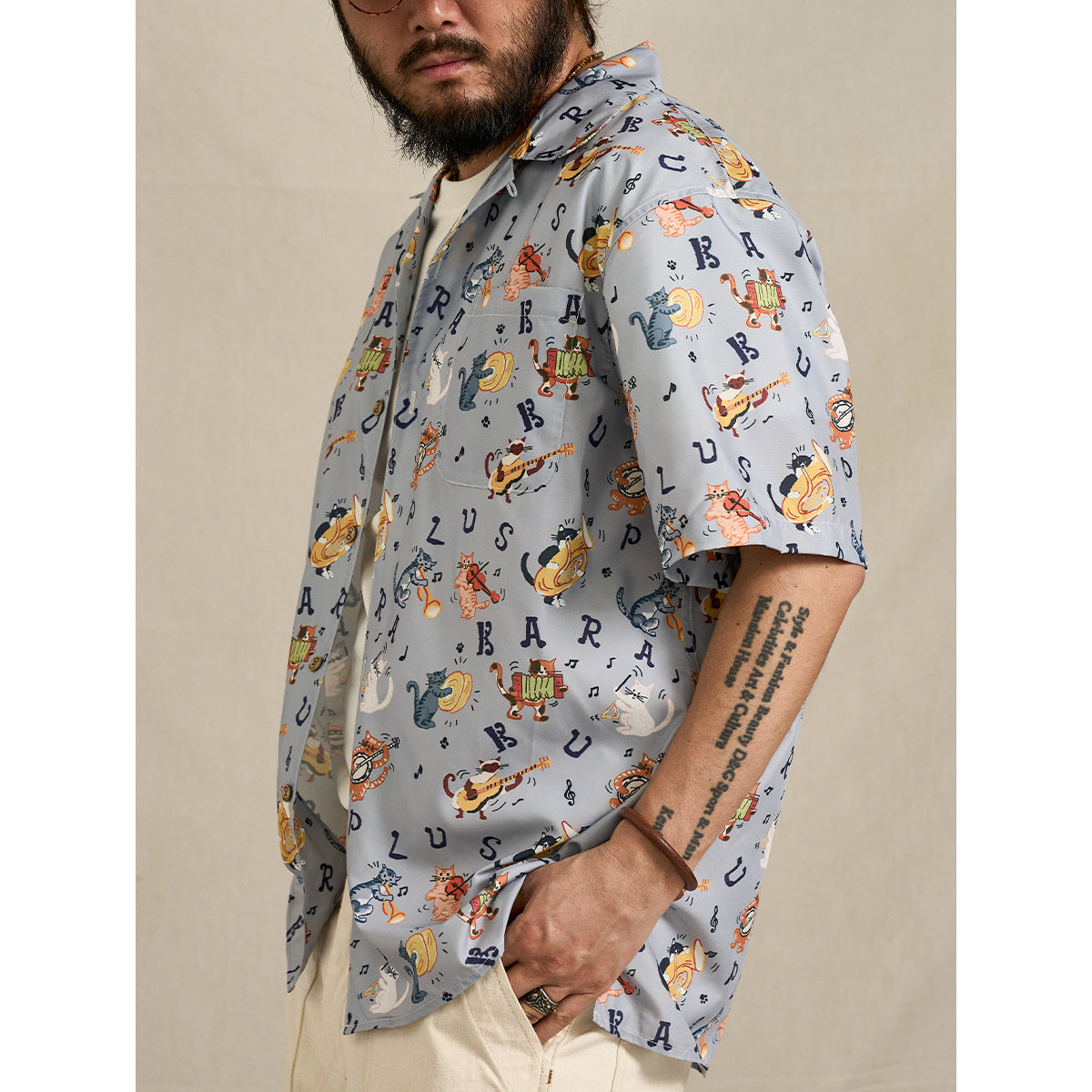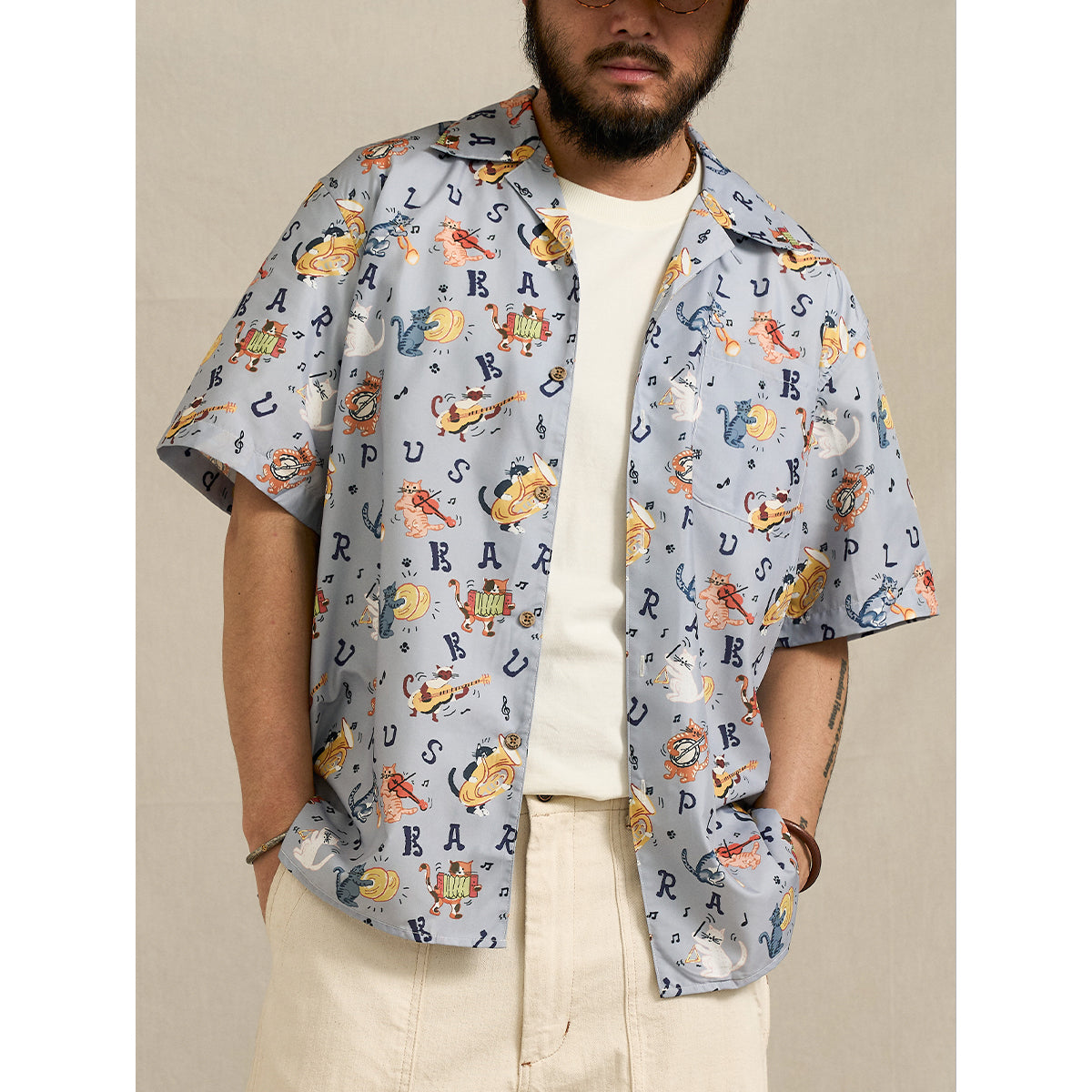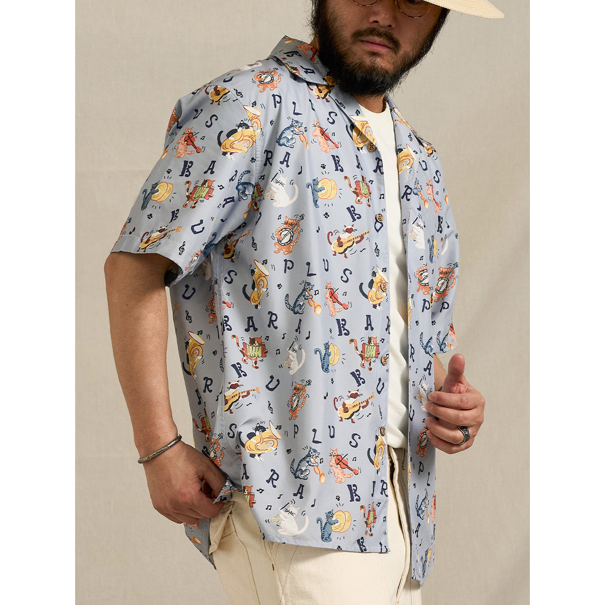 商品名称:新色追加!「ネコ図鑑」総柄プリントアロハシャツ