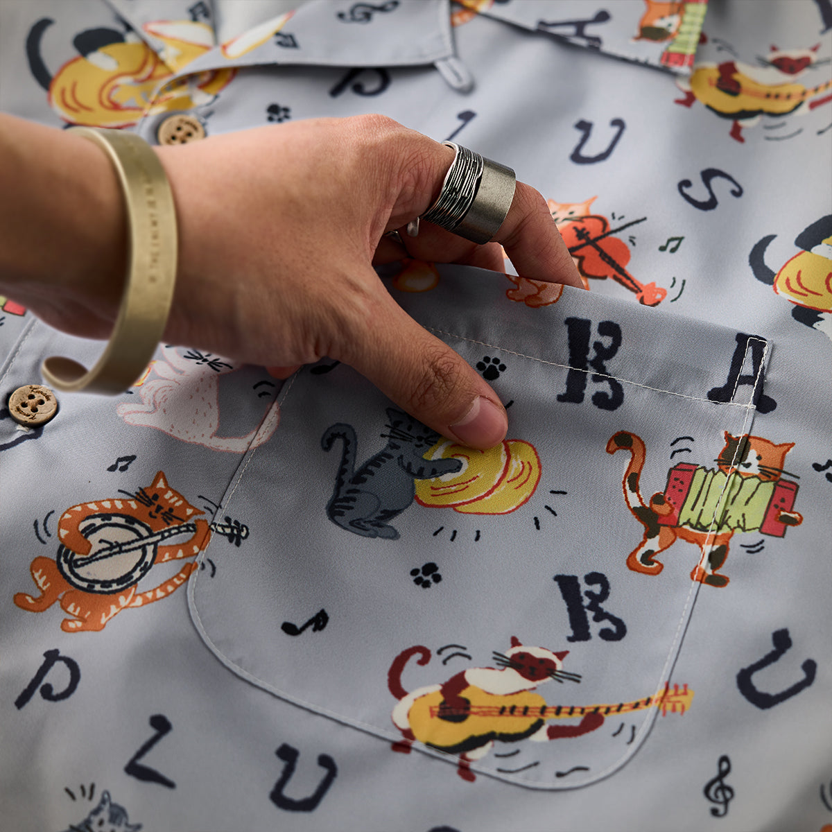 第2位:新色追加!「ネコ図鑑」総柄プリントアロハシャツ