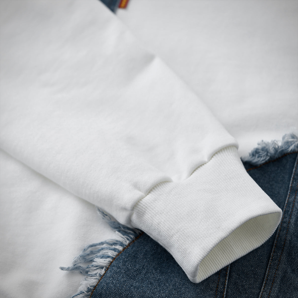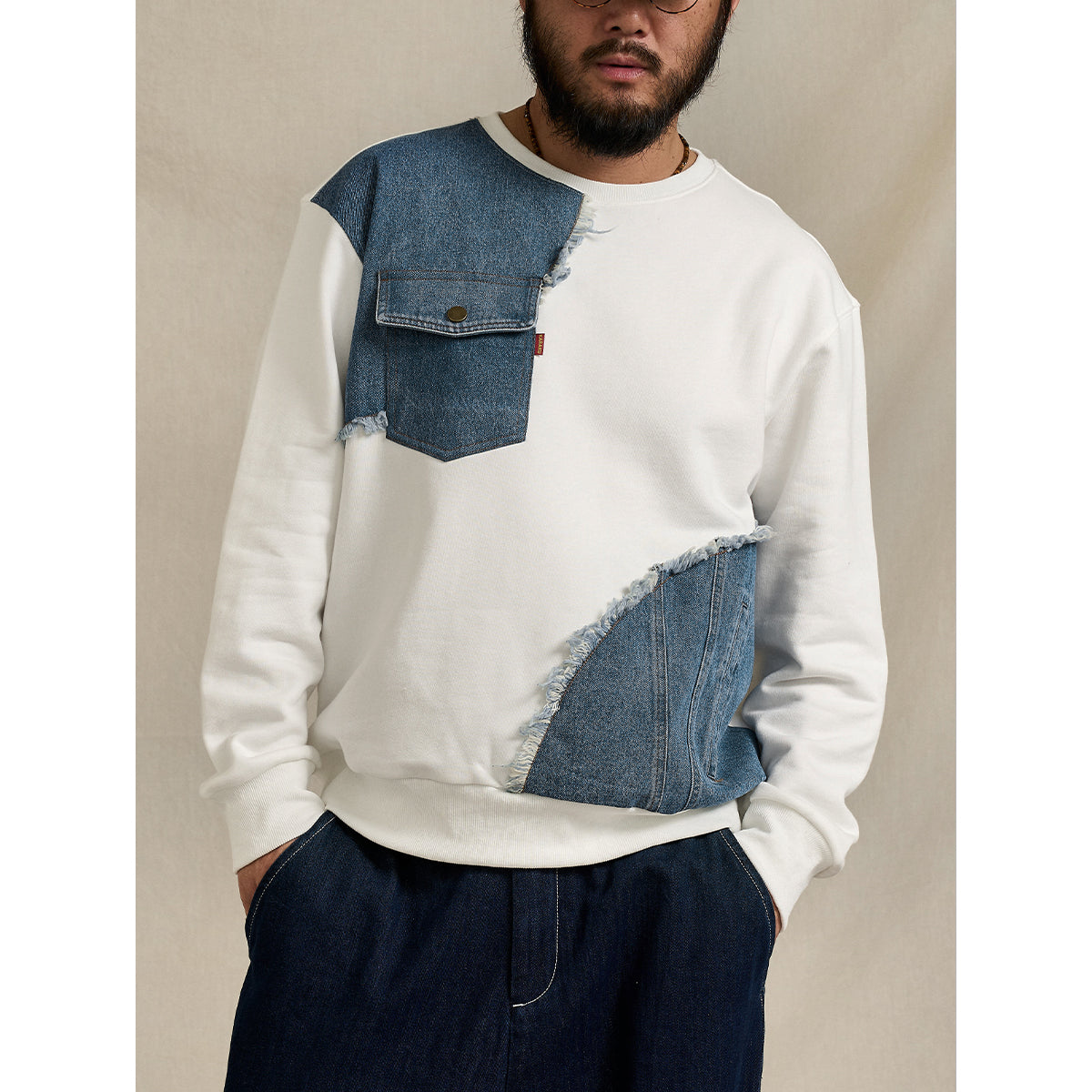 商品名称:ウォバッシュ ストライプ柄ホワイトワークデニムパンツ