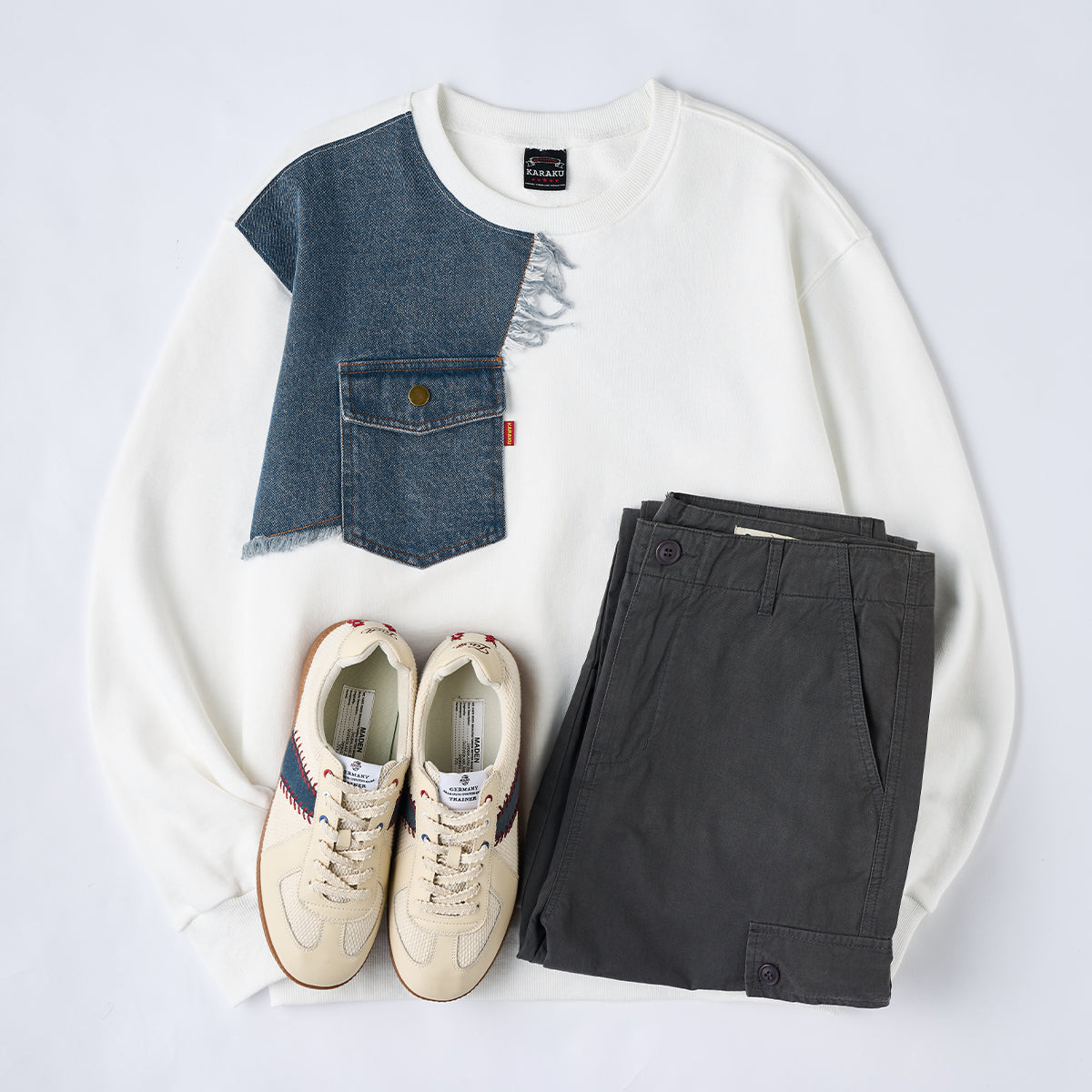 素材は自然の色落ちとユーズド感で現れ、ヴィンテージ感も満載。