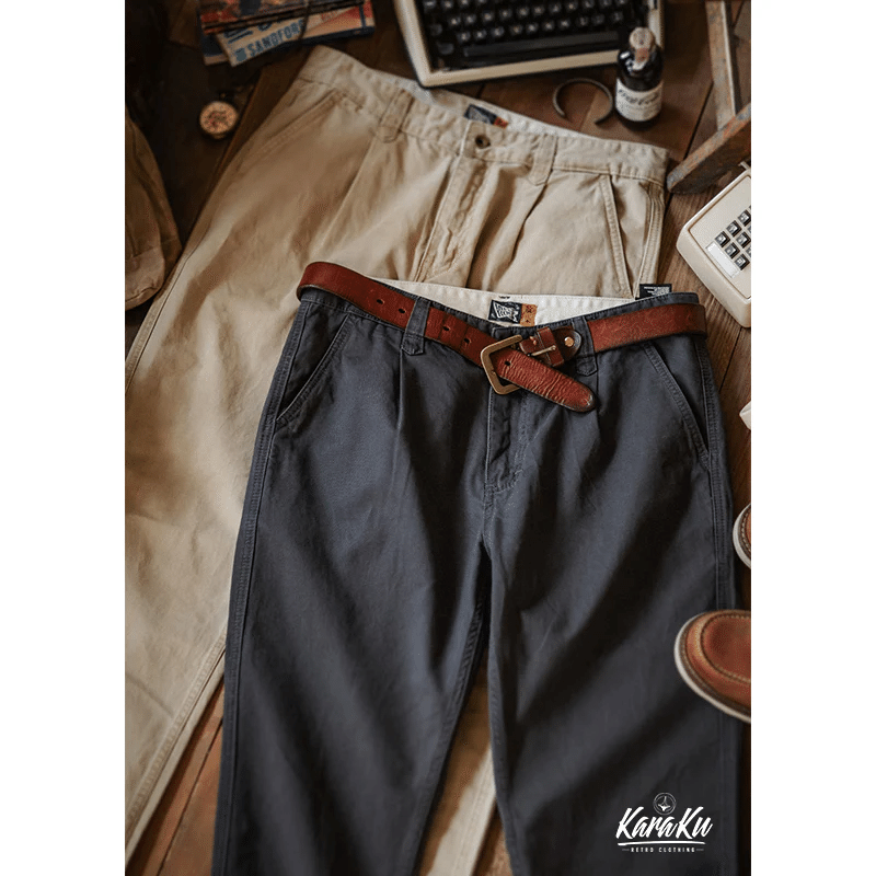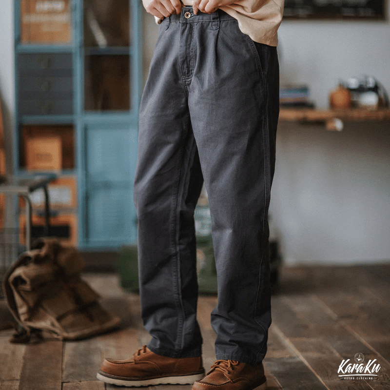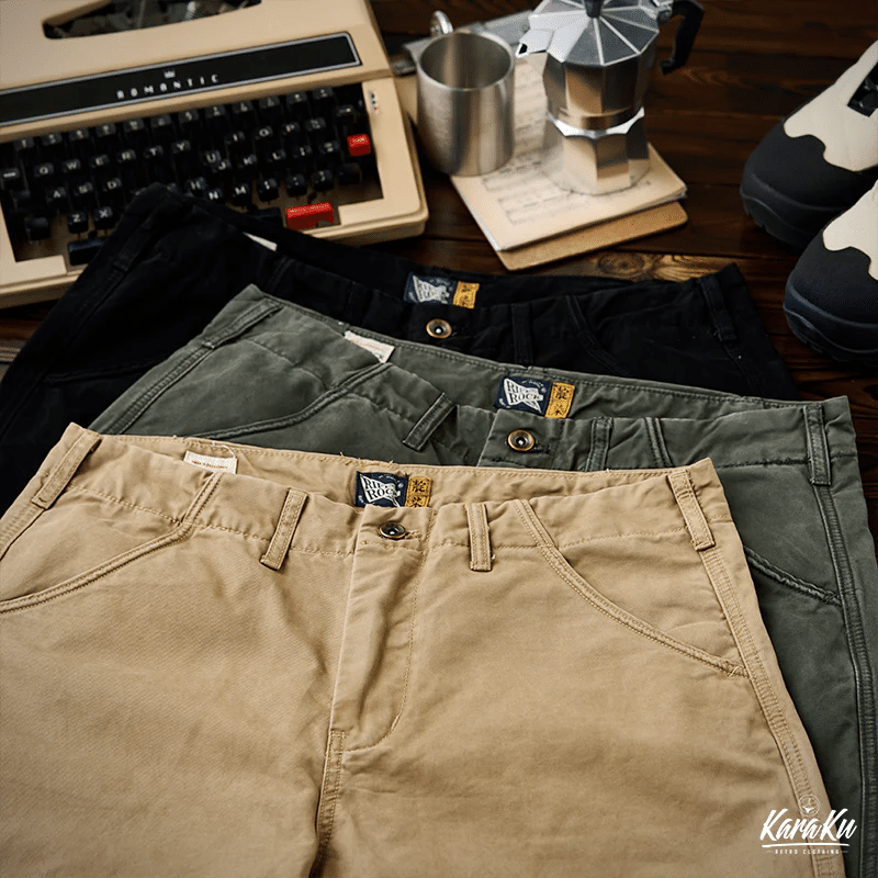 しっかりとした高品質のコットンツイルを使用。穿きこむことで味わいをお楽しみいただける一品です。ウォシュド加工もされたため、さりげなくビンテージ感も演出。